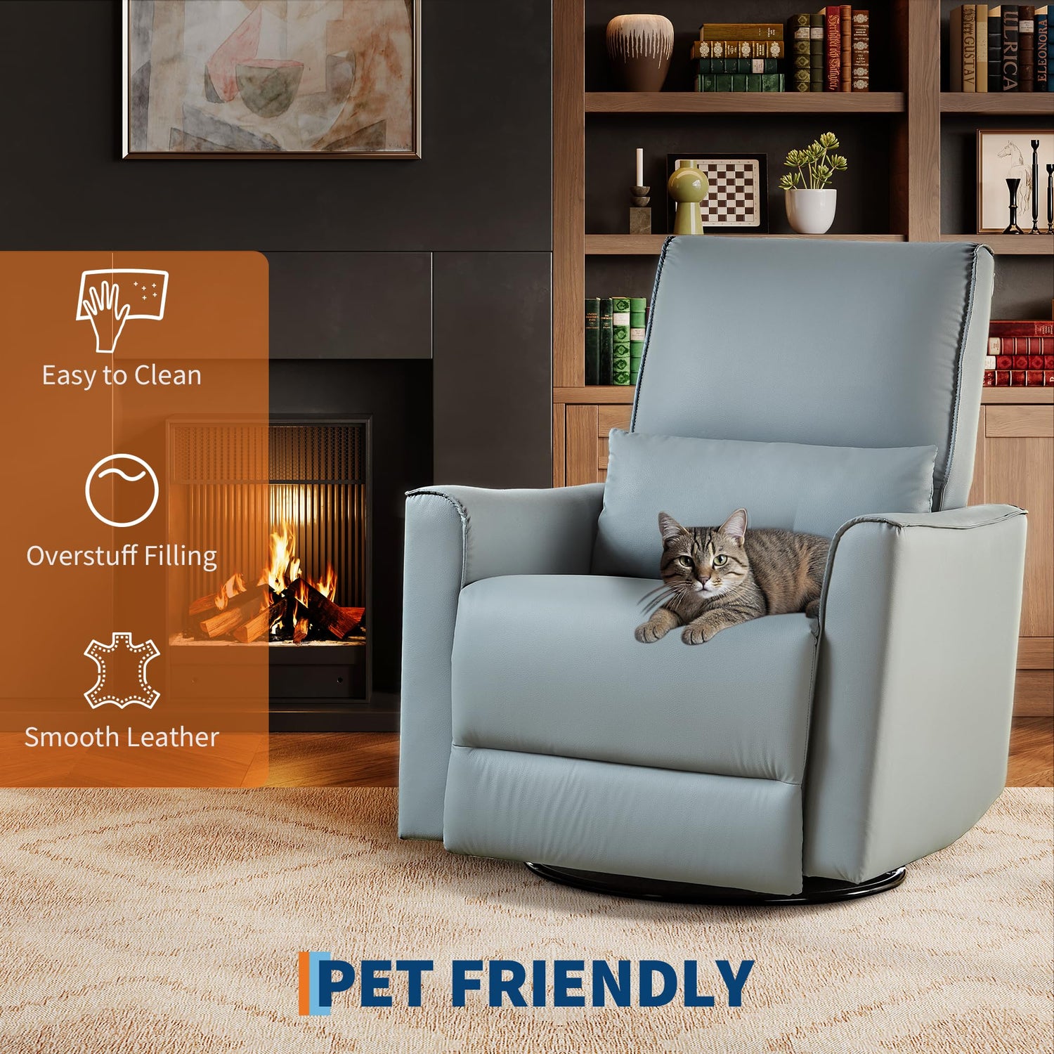 IDEALHOUSE Swivel Rocking Nursery Recliner Chair Rocker Recliner Glider Deep Seat PU Leather Sofa Chair with high Backrest for Nursery, Living Room, Bedroom & Home Movie Theater (Gray)