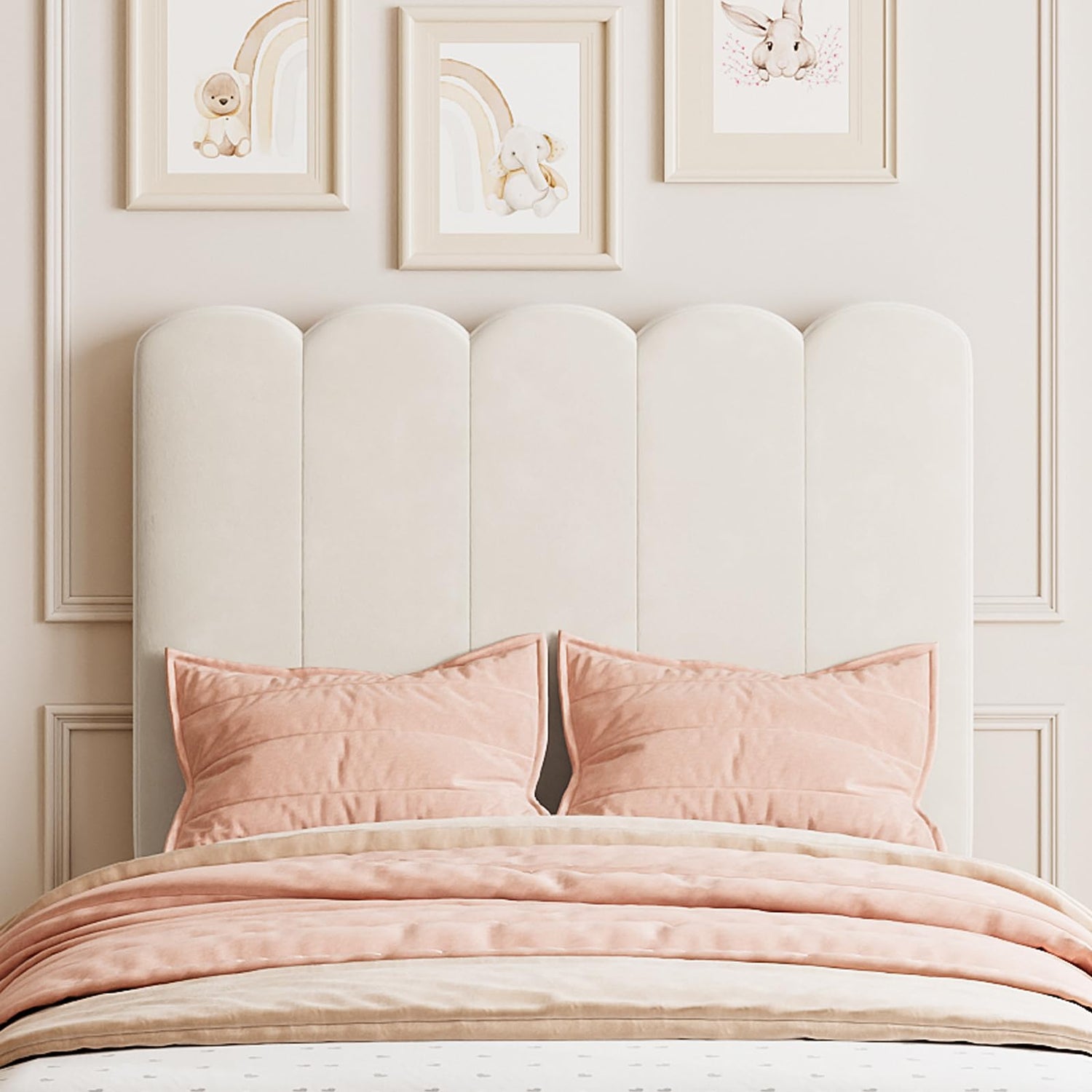 Details: Transform your child's bedroom with the upholstered twin bed frame featuring a unique wave pattern and a safe, low-profile design for comfort and style.