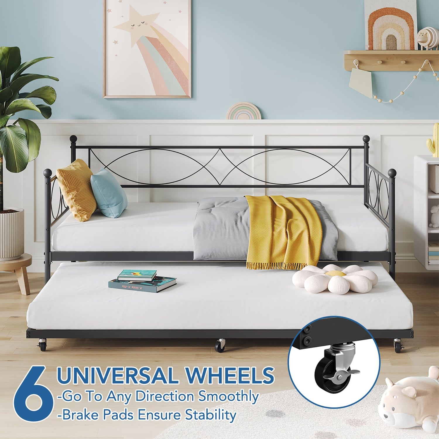 - [Space-saving Daybed] - This Metal Day Bed with Pull Out Trundle can be easily placed against the wall in your bedroom, guest room, or living room, serving as a comfortable guest bed. The daybed with trundle is particularly well-suited for small spaces and is an ideal choice for siblings who need to share a room.