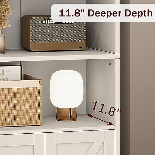 White Industrial Bookcase with Doors - 71.4in Tall Farmhouse Wooden Bookshelves by IDEALHOUSE