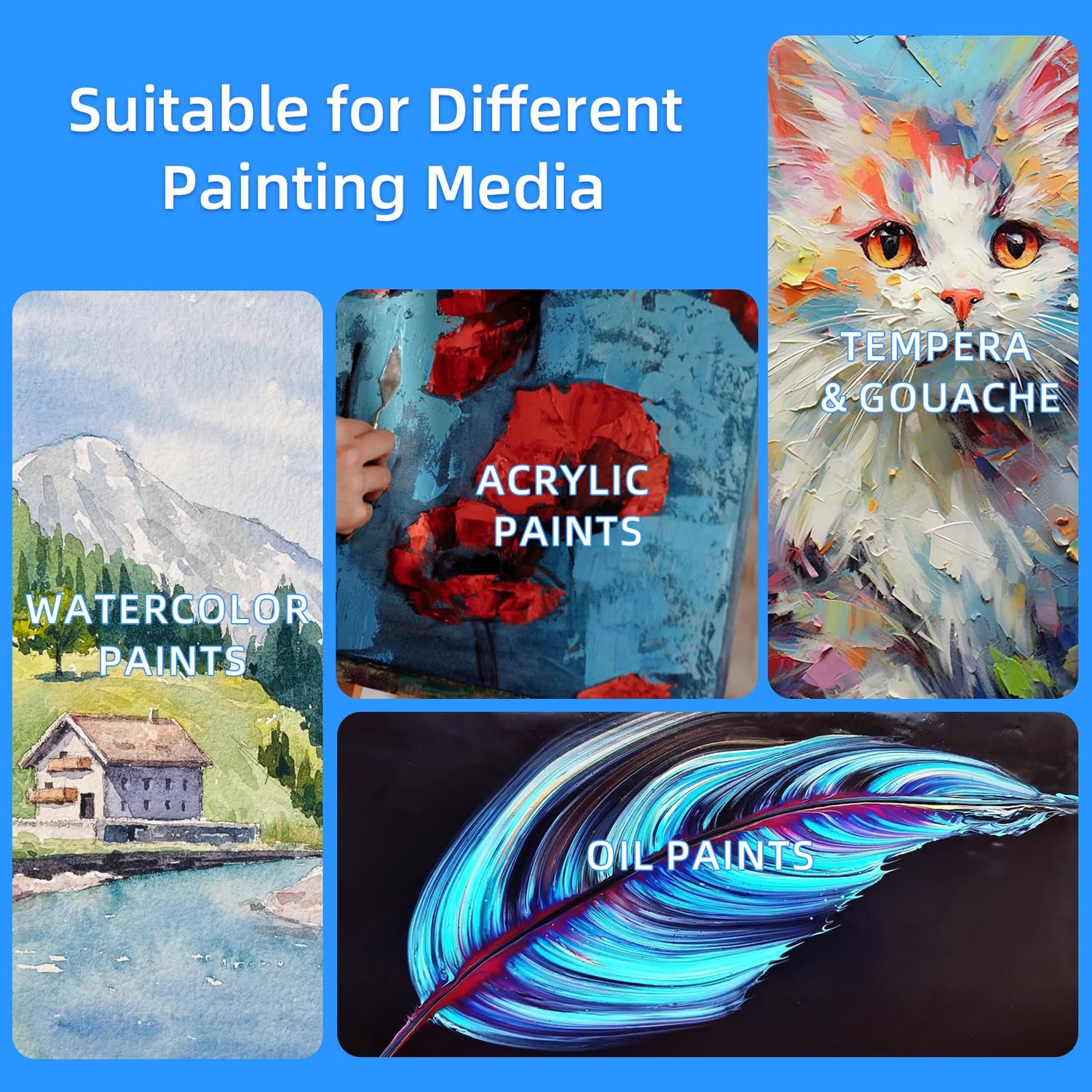 - 【A PRIMER ON CANVAS】: idoobi canvases for painting is pre-coated acid-free acrylic gesso. It is easy to color, not easy to crack. Canvases can maintain the picture quality for a long time. Suitable for various kinds of painting materials, e.g, oil, acrylic, watercolor, other painting media. Works especially great for oil and acrylic color to keep your paintings bright, glossy and last decades.