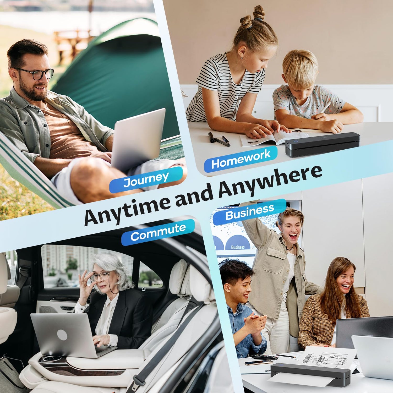 - Print Anytime and Anywhere:This compact printer only 498g and 26 x 5.6 x 4.6 cm body size, which is lightweight, whether you are in the car, at home, outdoors or your travels, you can print your contracts, office documents, lists, invoices, labels and any documents you need at any time