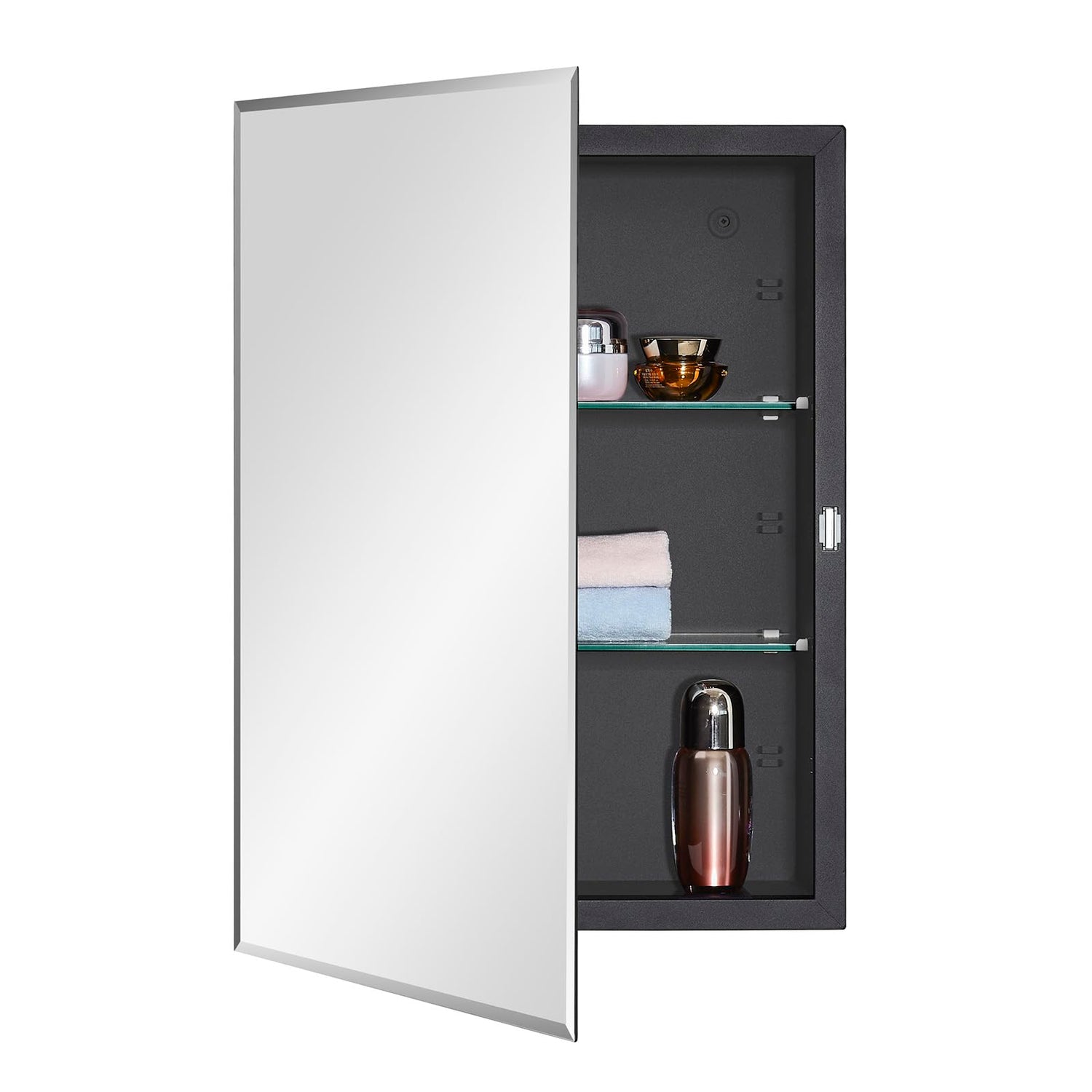 IDYLLOR Black Bathroom Medicine Cabinet with Beveled Edge Mirrored Door 16 x 22 inch, Recessed or Surface Mount, with Adjustable Glass Shelves