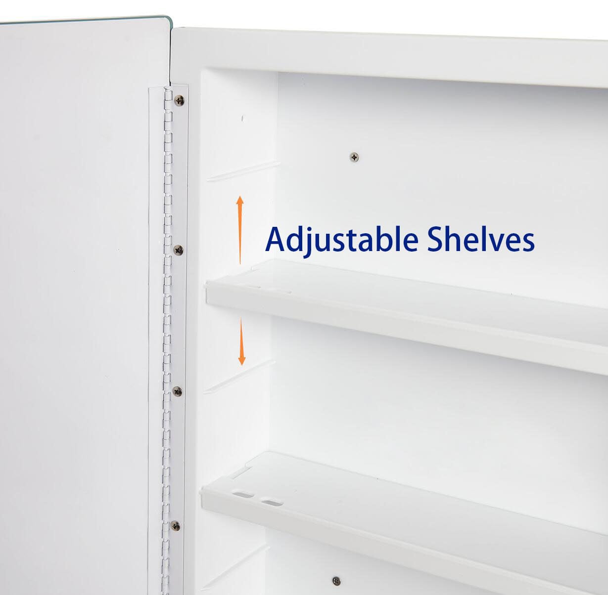 - 【Shelf】The medicine cabinet is with 3 adjustable plastic shelves, offering ample storage space to keep your cosmetics, toiletries, and other personal items organized and easily accessible.