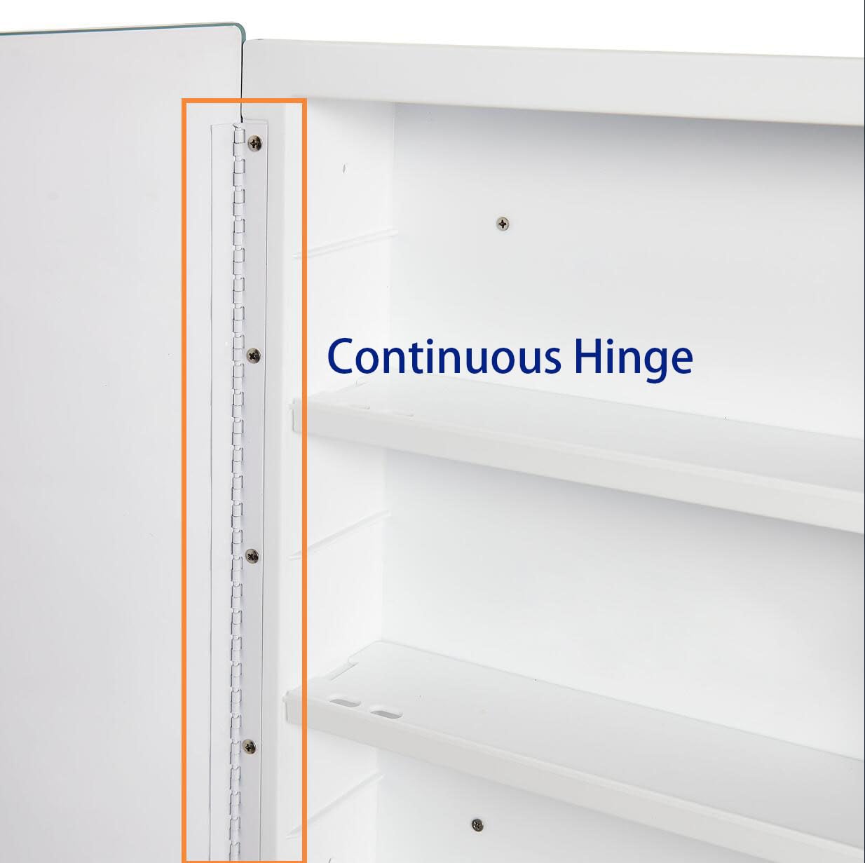 - 【Hinge】The bathroom medicine cabinet is with continuous piano hinges, providing strong support for the door panels; and also make it easier to control the angle at which the doors open and close.
