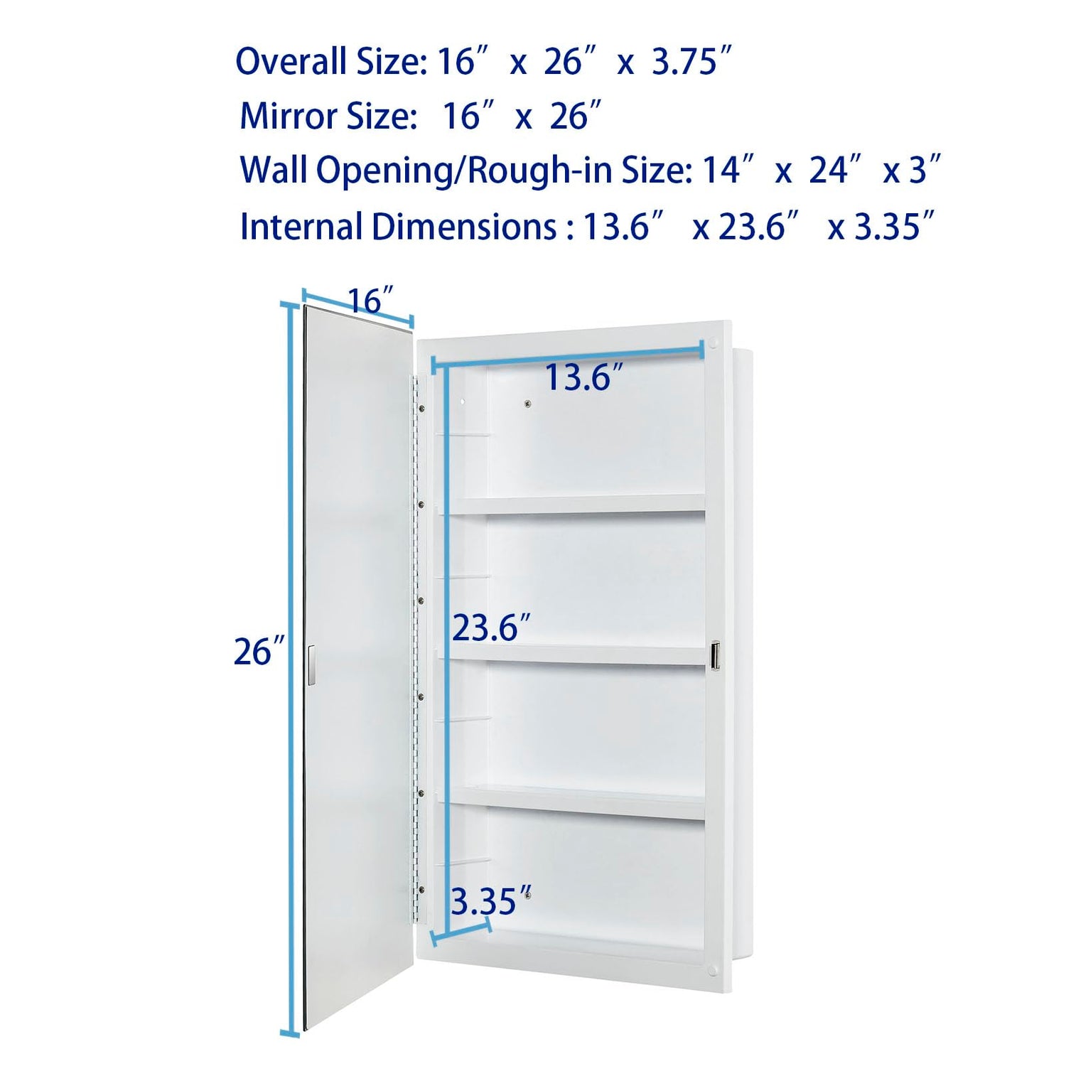 IDYLLOR Plastic Medicine Mirror Cabinet for Bathroom 16 x 26 inch, Surface and Recessed Mount