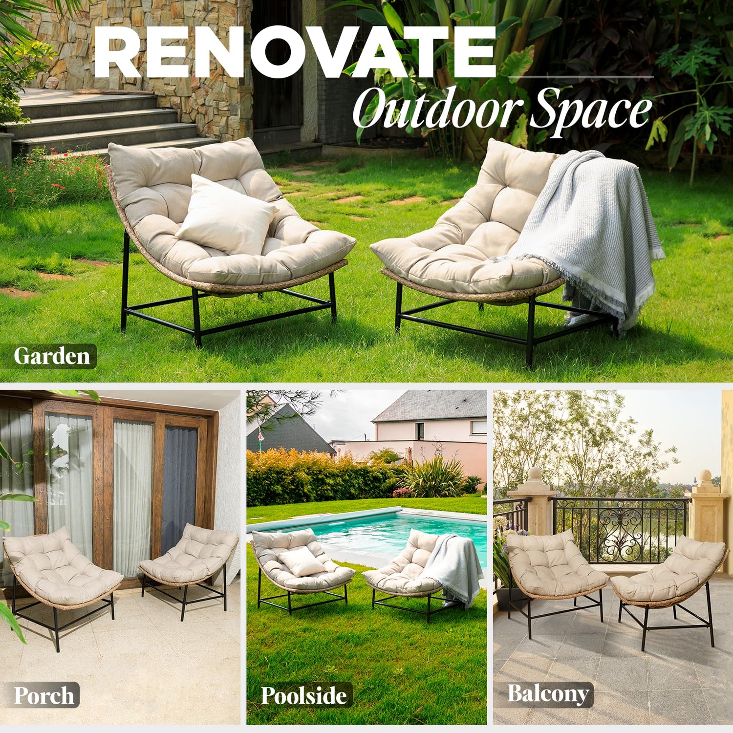 - ERGONOMIC SCOOP DESIGN: Curved and oversized chair to contour your figure for luxurious comfort, making outdoor lounging an enjoyable experience; Each wicker chair in our set of 2 supports up to 500 lbs, ensuring sturdy, long-lasting use in any setting