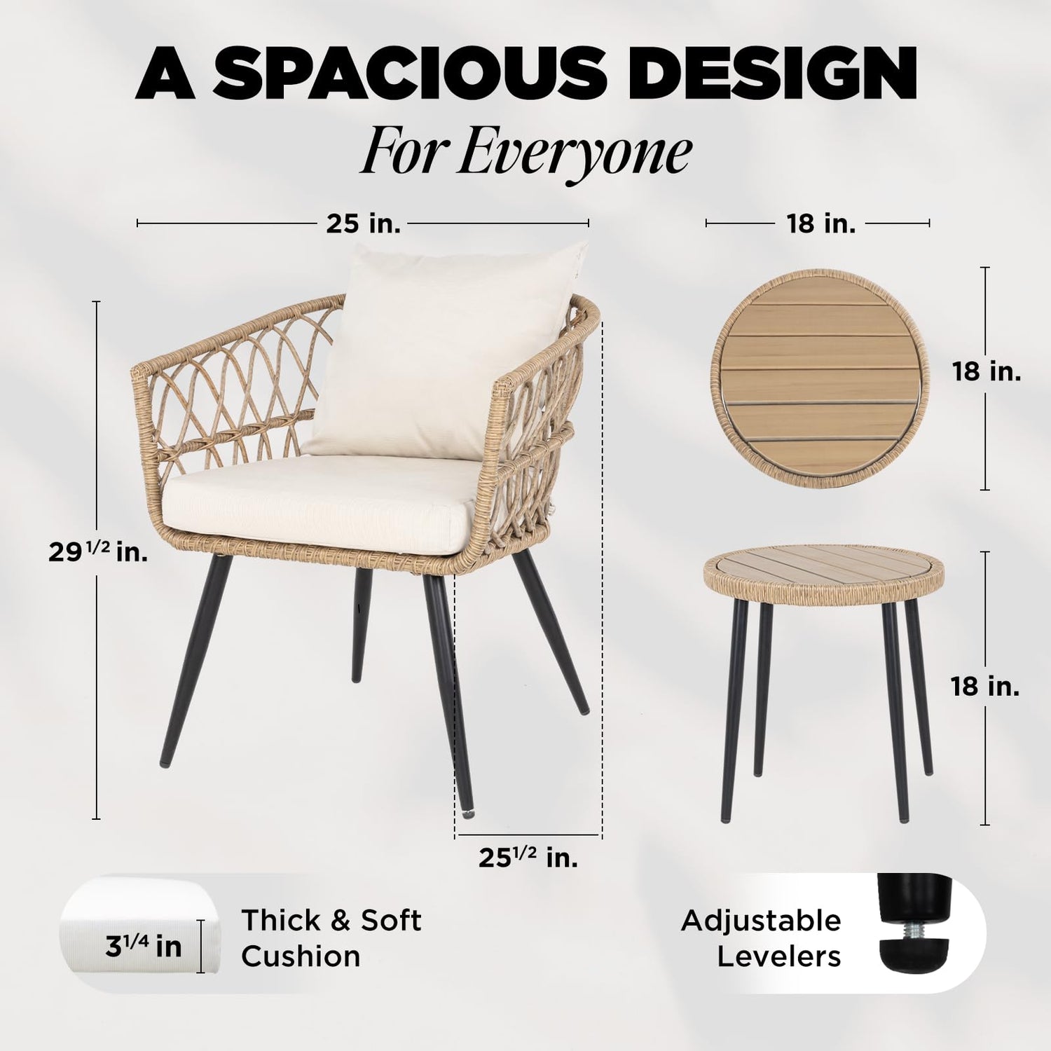 ☄️ Our ergonomic wicker outdoor bistro set dimensions are optimized for the ideal lounging experience.