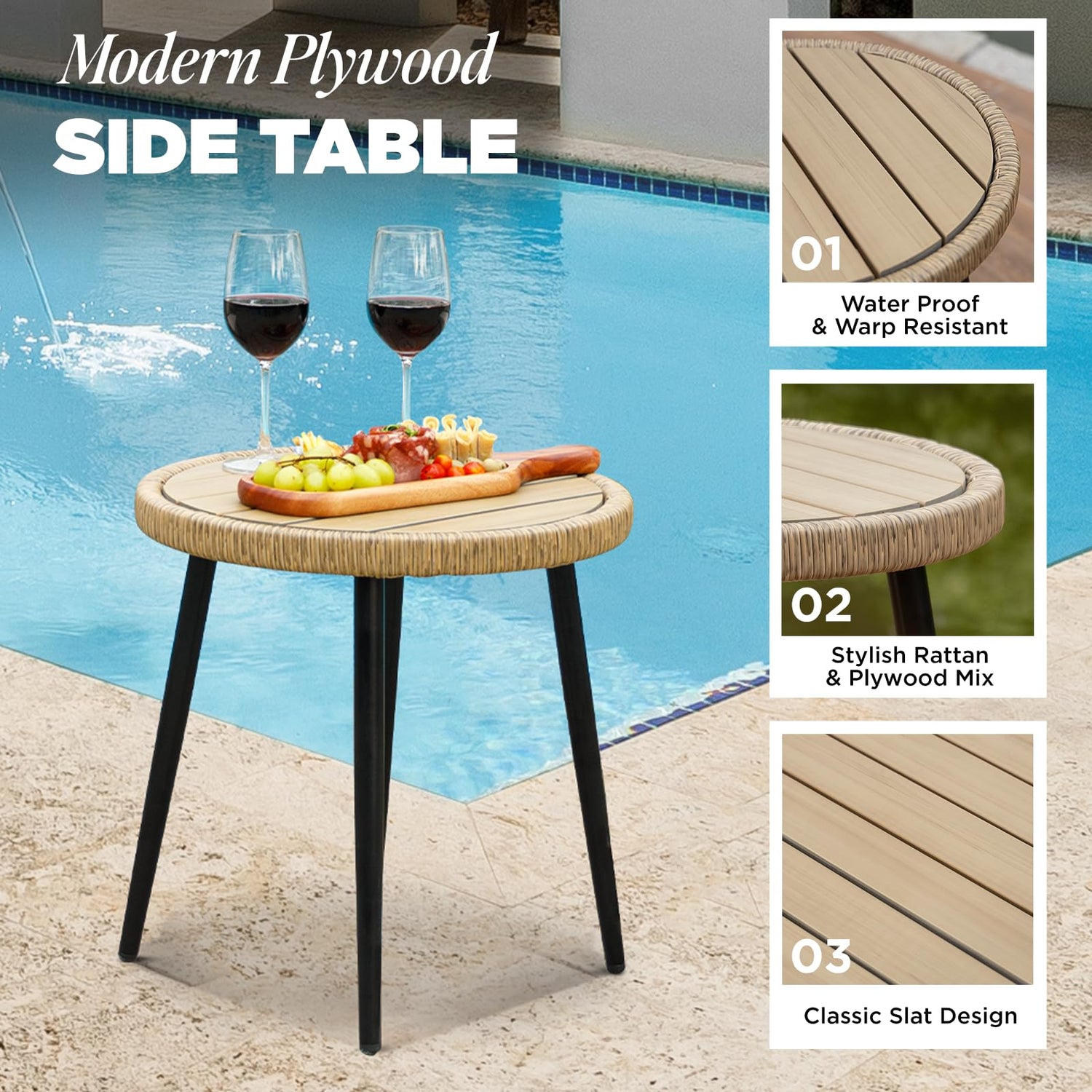 - 『STYLISH PLYWOOD SIDE TABLE』Elevate your outdoor space with our classic side table from wicker rattan bistro patio set; The sturdy polywood table of boho patio set is durable against weather conditions, adding a touch of modern elegance to your patio