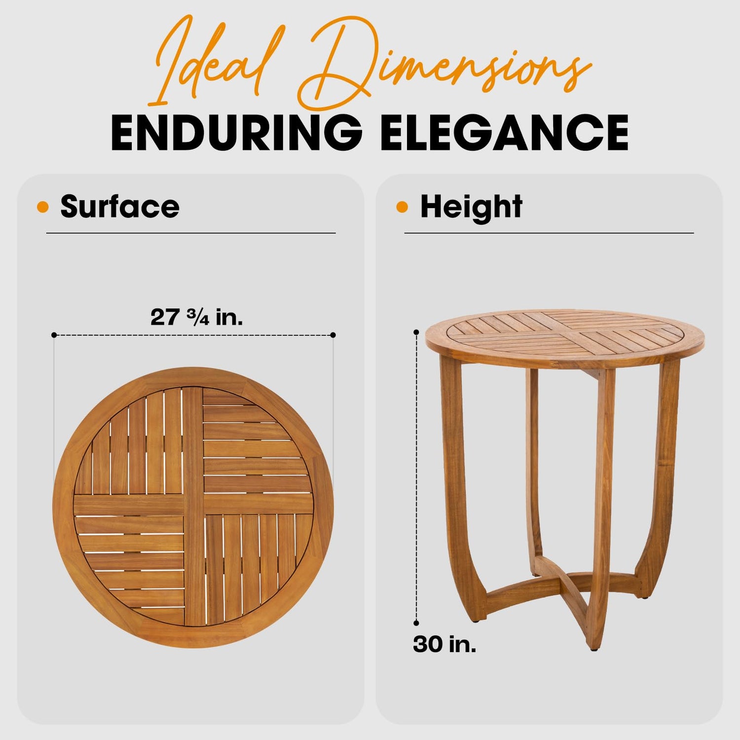 - 🌳 DURABLE AND SUSTAINABLE ACACIA BISTRO TABLE OUTDOOR - Our round outdoor dining table is expertly crafted from FSC certified acacia wood for durability; This wood patio table's top is shielded from UV rays and weather by a high grade oil paint coating