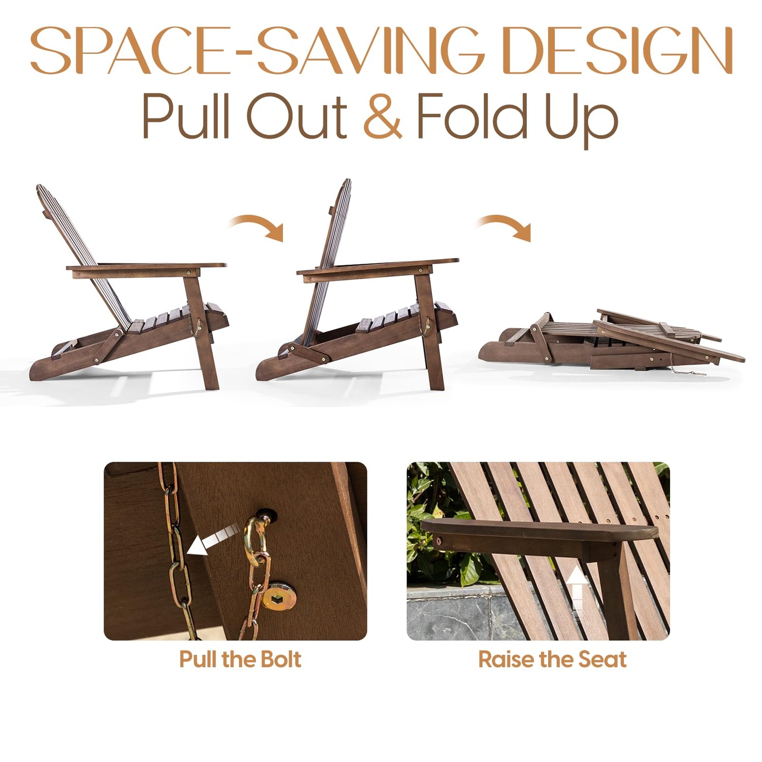 - 🪑 PREMIUM FSC EUCALYPTUS WOOD PATIO CHAIRS: Our eucalyptus outdoor folding adirondack chair is using selected solid wood, every piece was well selected and with brushed finishing, giving you premium and royal feel when sitting on it