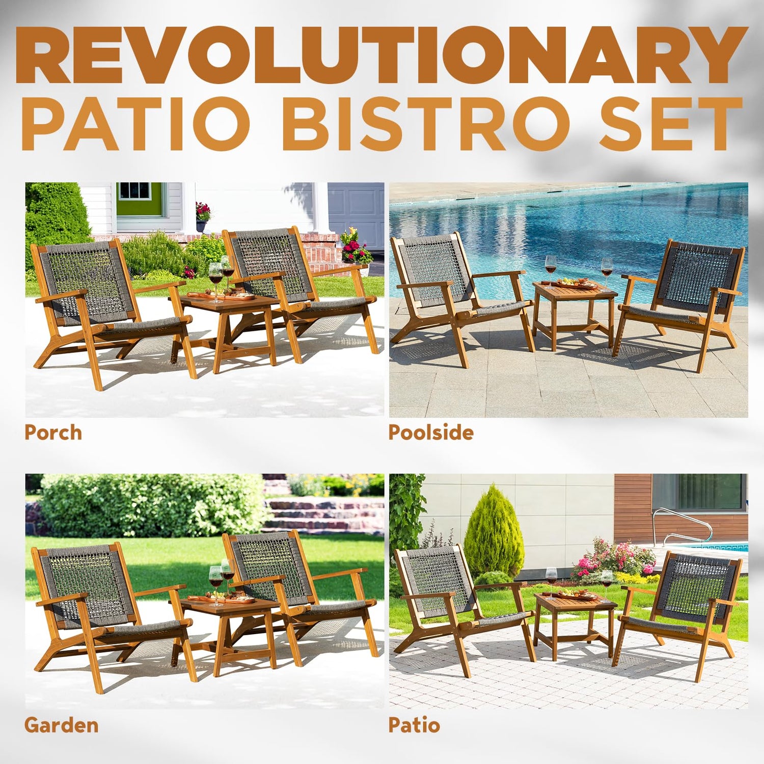 - 『FSC-CERTIFIED ACACIA WOOD PATIO BISTRO SET』: Our outdoor bistro set features responsibly sourced, FSC-certified acacia wood under license C137086, for style and sustainability in your outdoor space. Enjoy an elegant and sturdy wood bistro set.