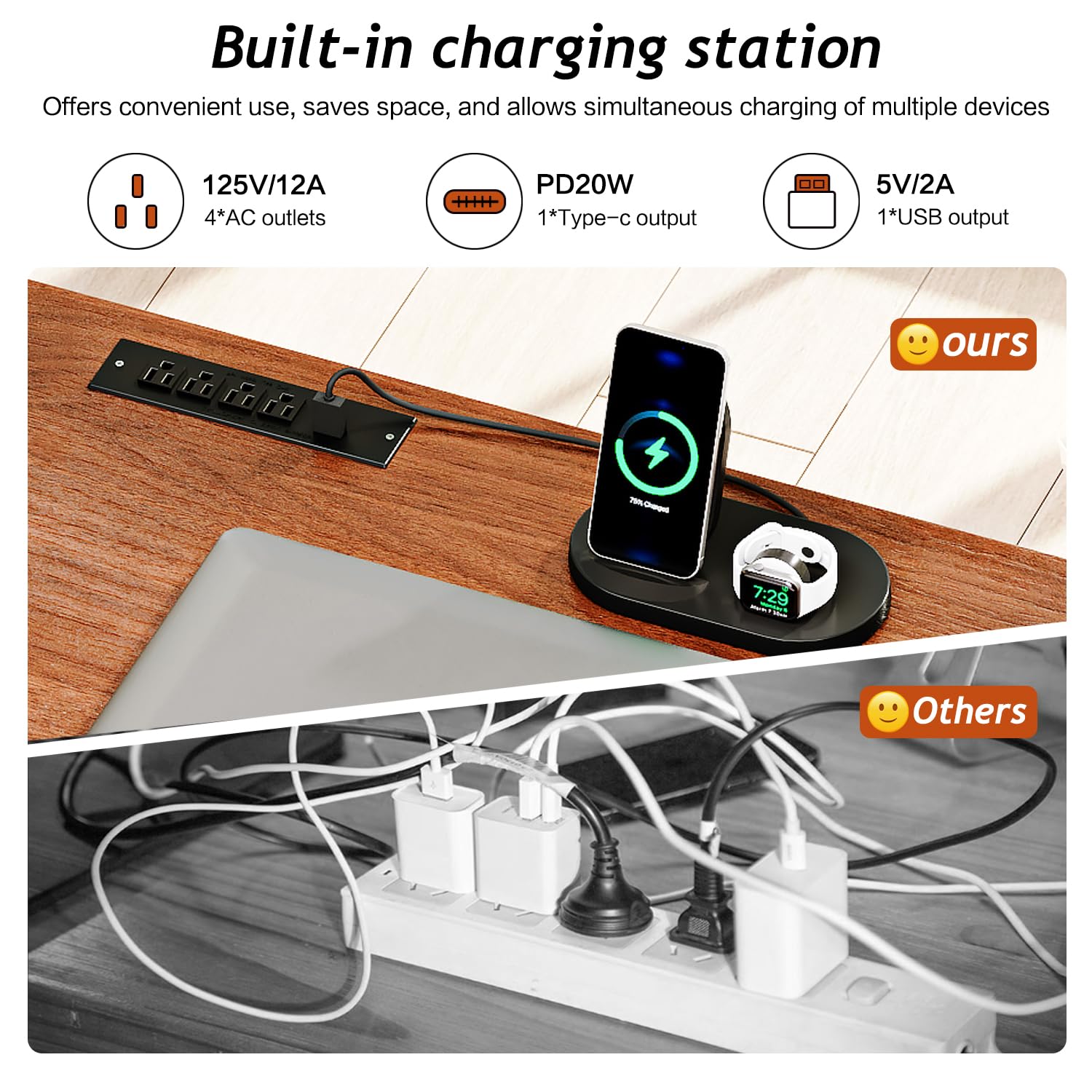 - 【Built-in Power Strip】Upgrade design!This Computer Desk equipped with a power strip that has 4 standard plug sockets ,1 USB ports and 1 T-C with a 4.9-foot power cord,convenient for the Computers and printers, and charge your phone, tablet, or other electronics.