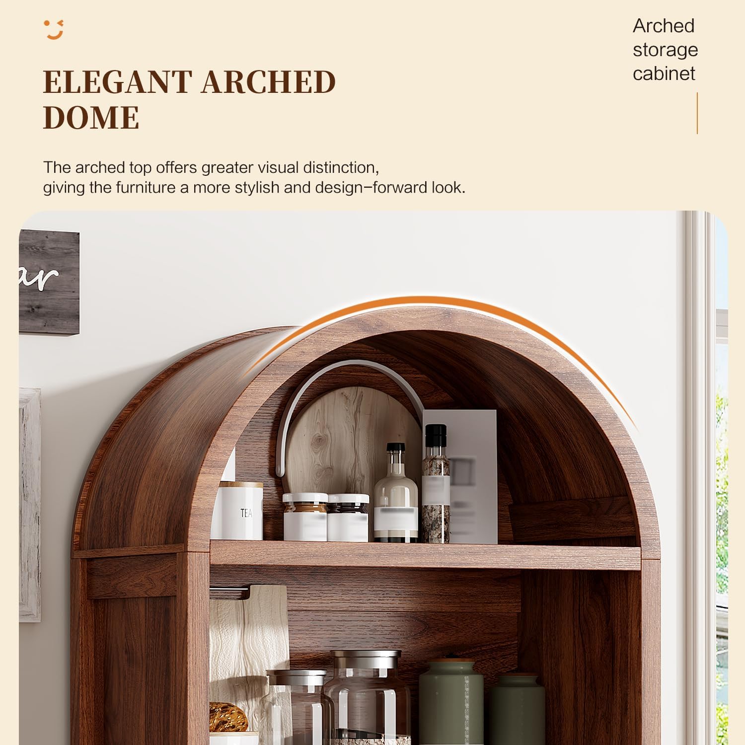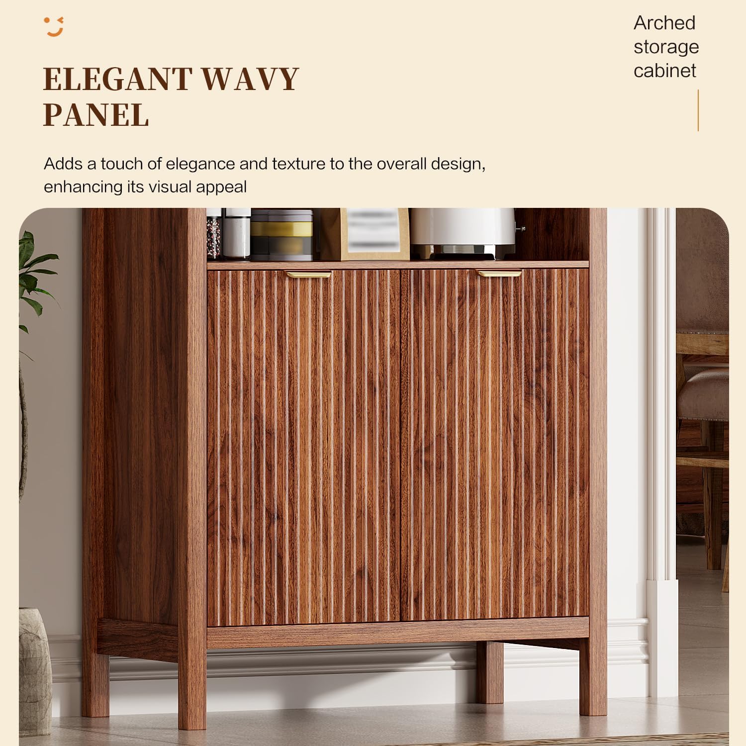 Ieejdn 71" Tall Arched Kitchen Pantry,Modern Fluted Wood Storage Cabinet with Doors,Adjustable Shelves,Organizer, Versatile Cupboard for Kitchen,Living Room,Dining Room,Bathroom,Walnut
