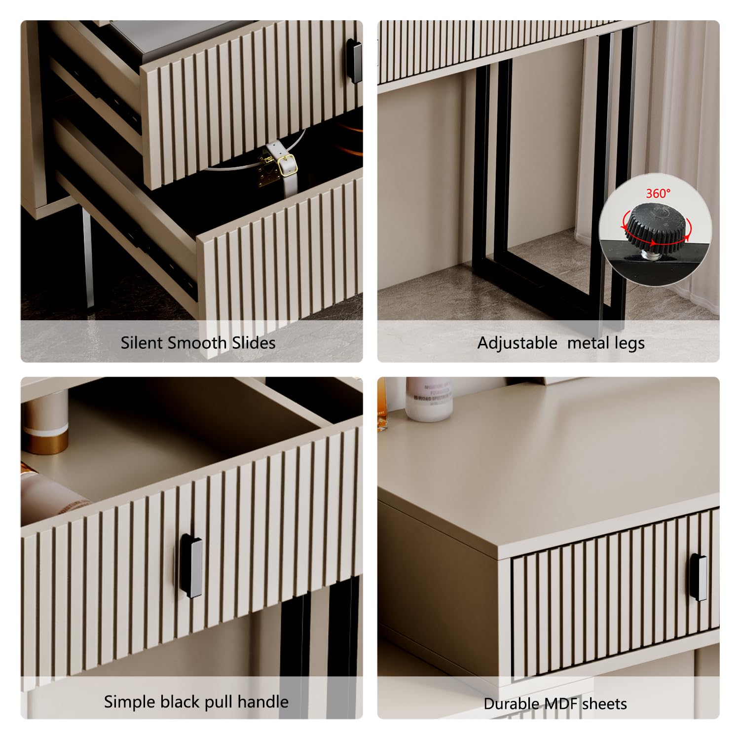 - 【Metal slides and Handles】 This white Vanity Desk is made of scratch-resistant, moisture-resistant MDF boards, and sturdy metal handles, a light wipe with a damp cloth will give the fresh look. easily on ball bearings, allowing you to effortlessly push and pull drawers to keep your items neat.
