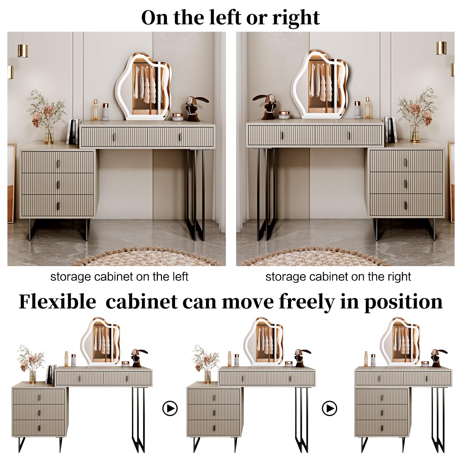 - 【Flexible combinations】The size of our Vanity Desk can be adjusted according to the length you need, and the position of the bedside table is also interchangeable from left to right, so that it can be placed and installed according to your needs to meet your multiple needs