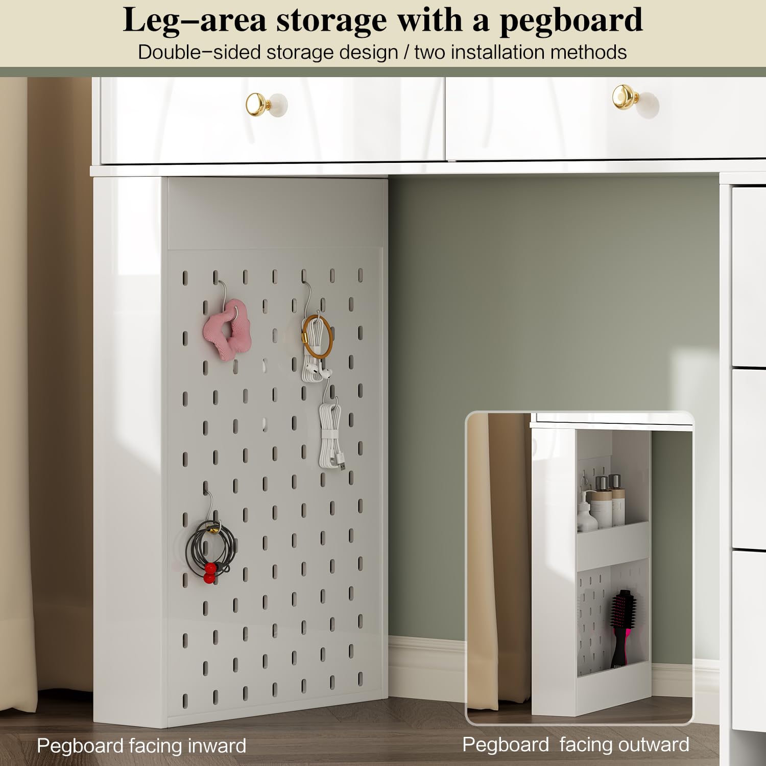 - 【3-Color LED Light】The vanity desk features a specially shaped dimmable lighting mirror with 3 different LED lighting colors, including natural, warm and cool light, for a variety of indoor lighting and environments to optimize your makeup