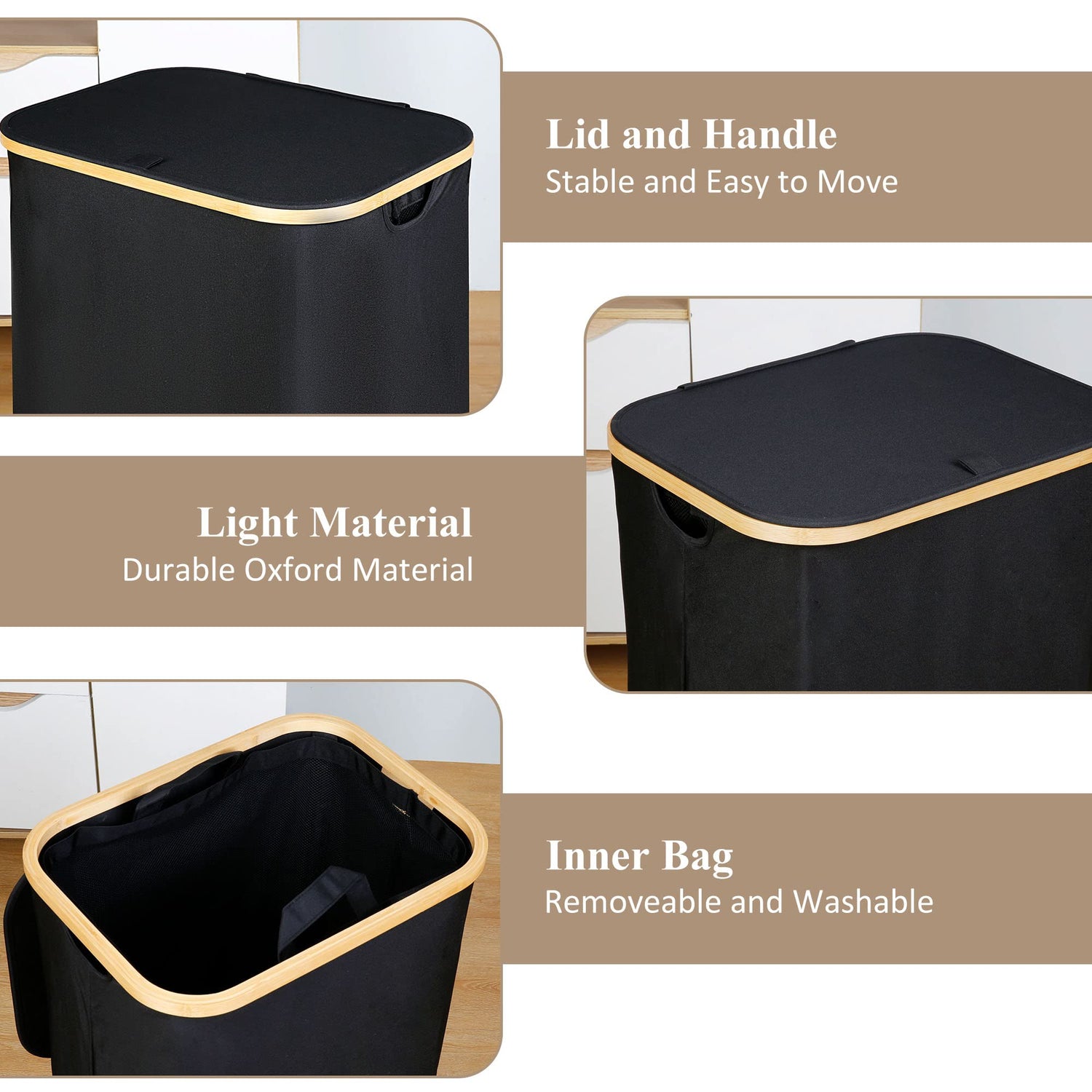 iEGrow Laundry Hamper with Lid, 110L Large Laundry Hamper with Handle and Lid, Collapsible Clothes Basket Organizer with Removable Inner Bag for Clothes Toys Towels - Black
