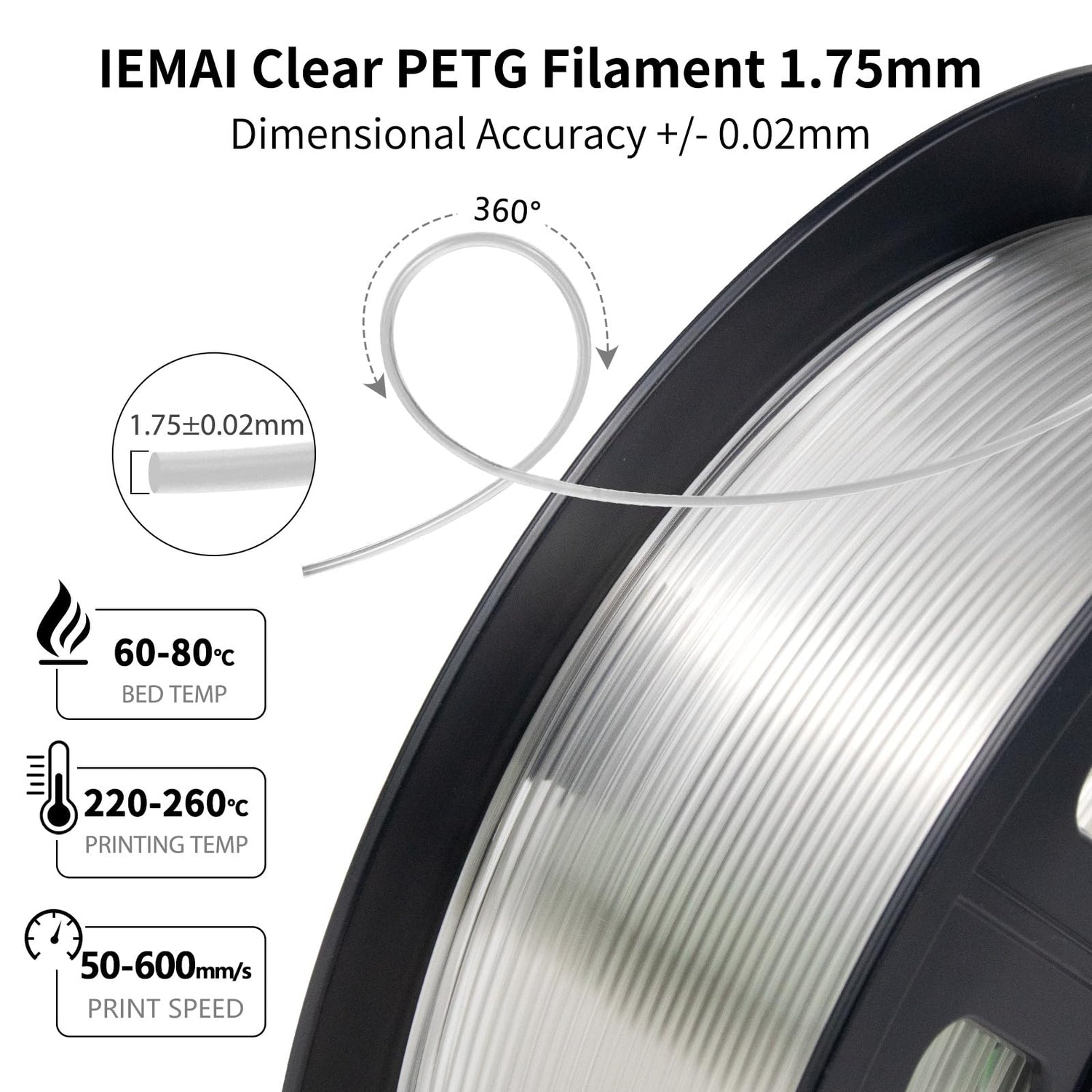 IEMAI Clear PETG Filament 1.75mm, Crystal Transparent 3D Printer Filament Up to 600mm/s Fast Printing, 1kg/2.2 lbs Spool, Designed for Home Decor & Creative Projects