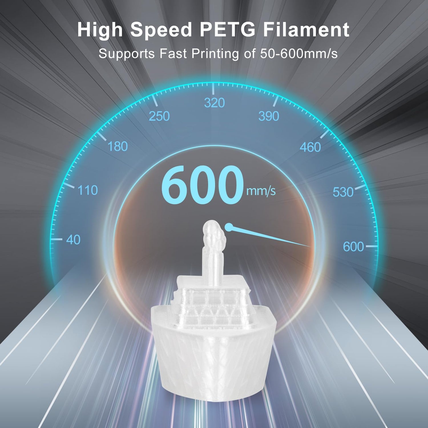 - 【Upgraded High-Speed PETG】IEMAI PETG filament 1.75mm supports up to 600mm/s fast printing without sacrificing print quality, significantly reducing printing time. It's compatible with both high-speed and conventional 3D printers, it delivers exceptional performance for efficient, high-quality printing