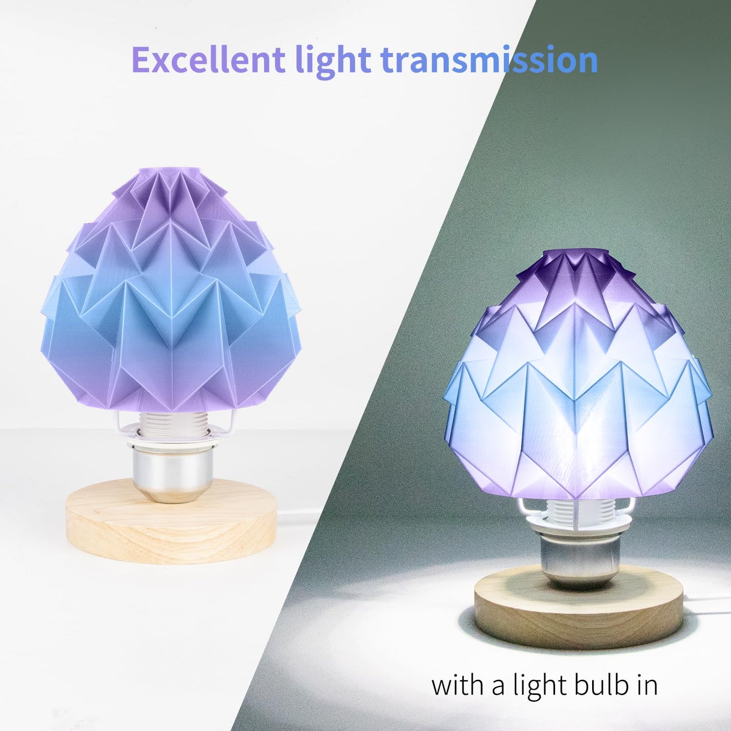 - 【Gradient Translucent Effect】IEMAI translucent filament with a color gradient from Blue to Purple, which offers excellent clarity and high light transmission, it is perfect for creating vibrant prints with varying transparency effects. Note: Different thicknesses of exterior walls will show different light transmission effect