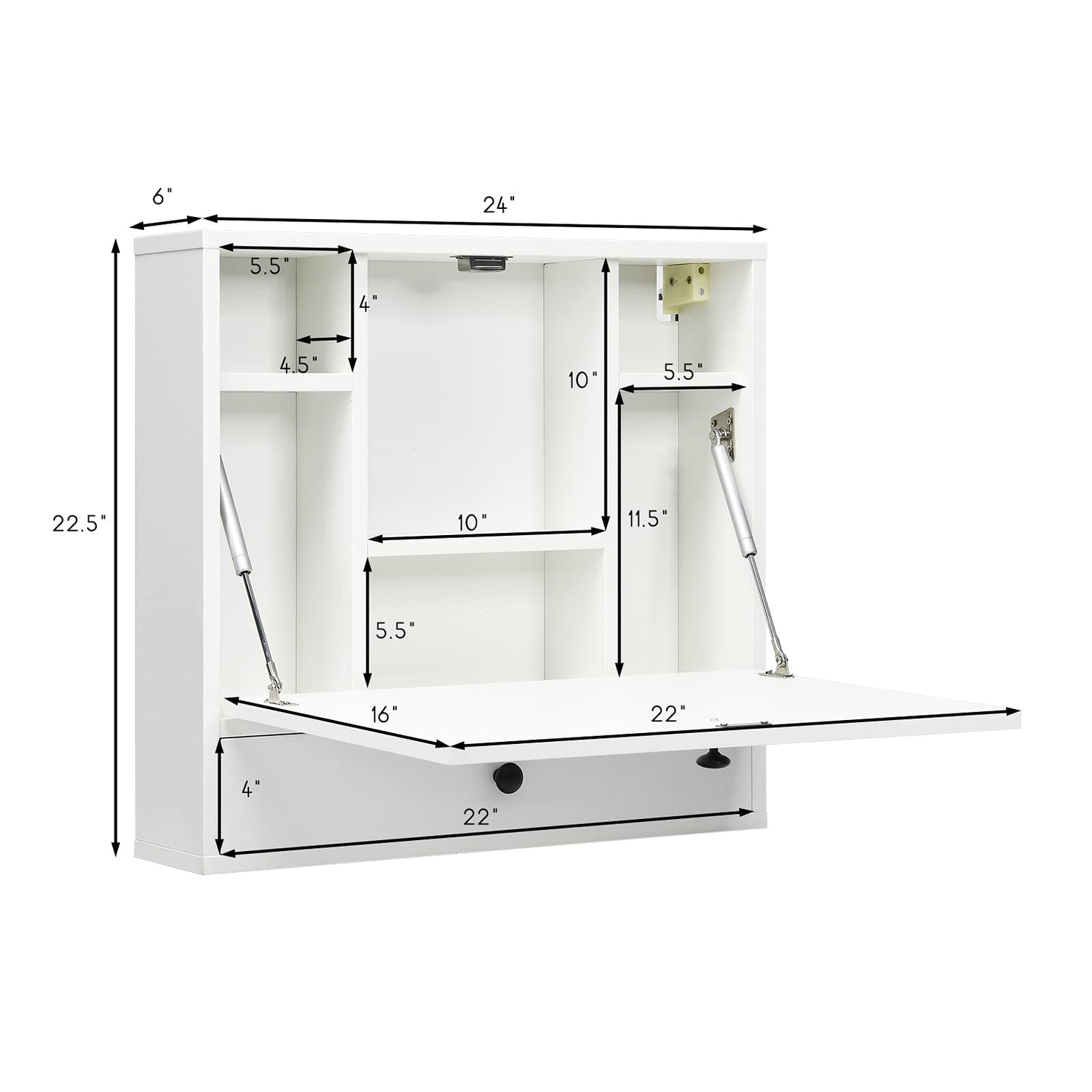 • 【Wall Mounted for Space Saving】Compared with conventional desks, wall mounted and folding tabletop design makes this floating desk perfect for small spaces. The tabletop can be folded up as a cabinet with size of 24'' x 6'' x 22.5''(W x D x H) on the wall when not in use, which would not occupy much space in your room.