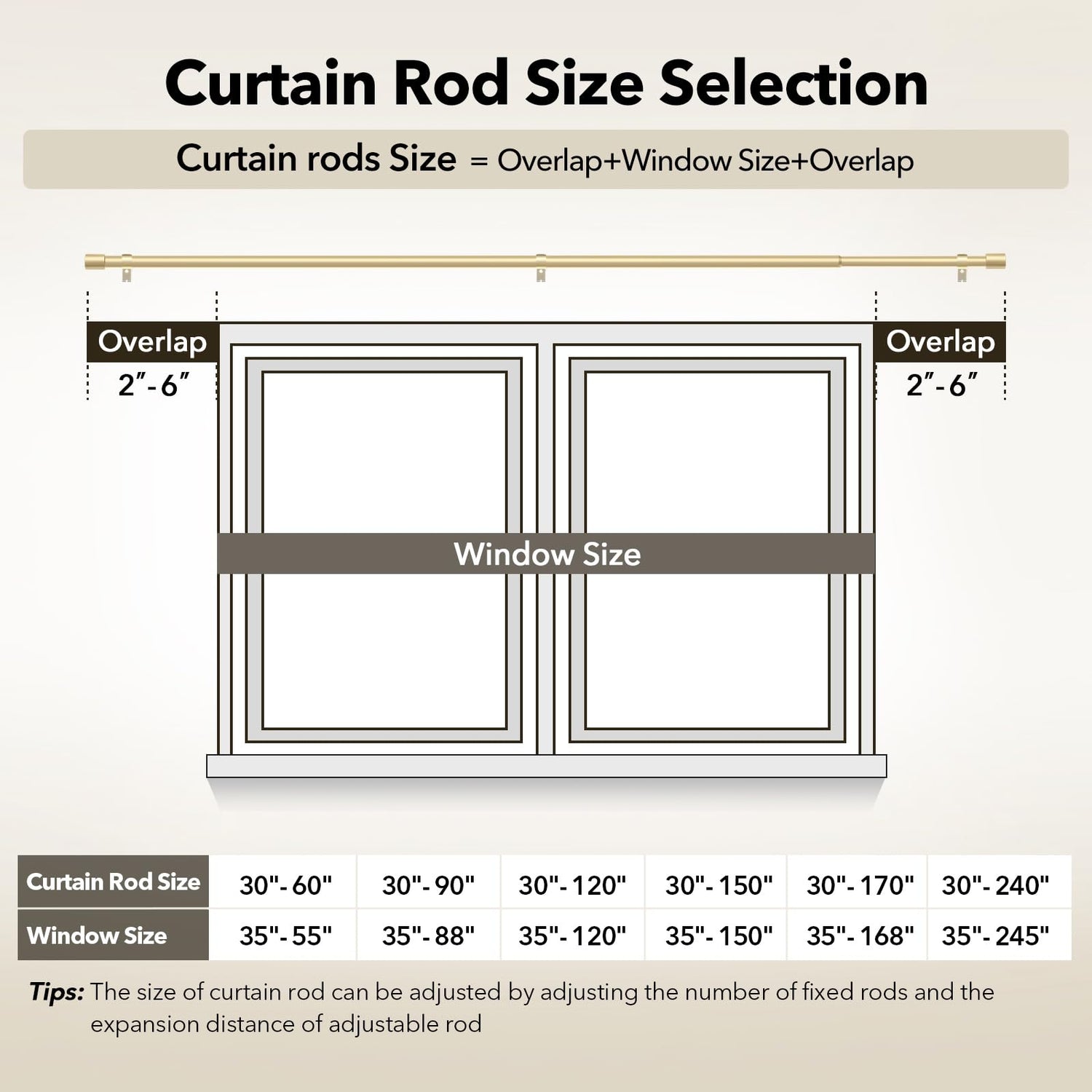- 【Multiple Rods Sturdy Structure】IFELS Curtain rods comes with 8 rods that need to be screwed together. Wall Mount Gold Heavy Duty Curtain Rods for Windows 66 to 120 Inch.