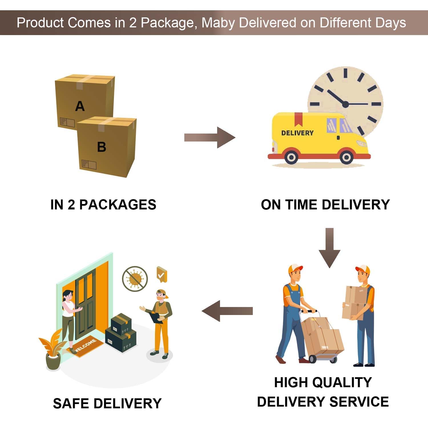 - Service and Packaging: Please note that due to the difficulty of shipping large items, items will be sent in two packages and they may be delivered at different times. The package is carefully wrapped with shock-absorbing foam and protective wooden boards to ensure safe delivery. If there are any issues with your package. Our professional customer service team will respond within 24 hours to provide you with a satisfactory solution.