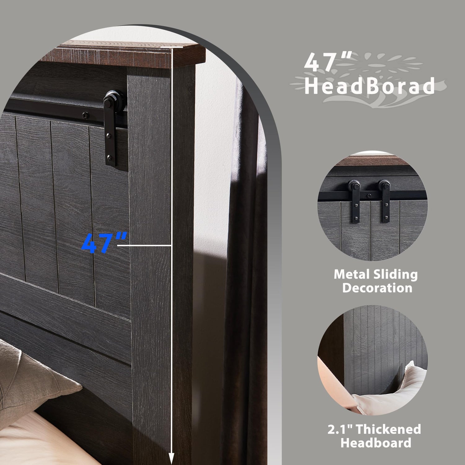 IFGET Farmhouse King Size Bed Frame with 47" Headboard, Wood Bed Frame with Groove Sliding Barn Door Footboard, Platform Bed with Wood Slats Support, No Box Spring Needed (Dark Grey)