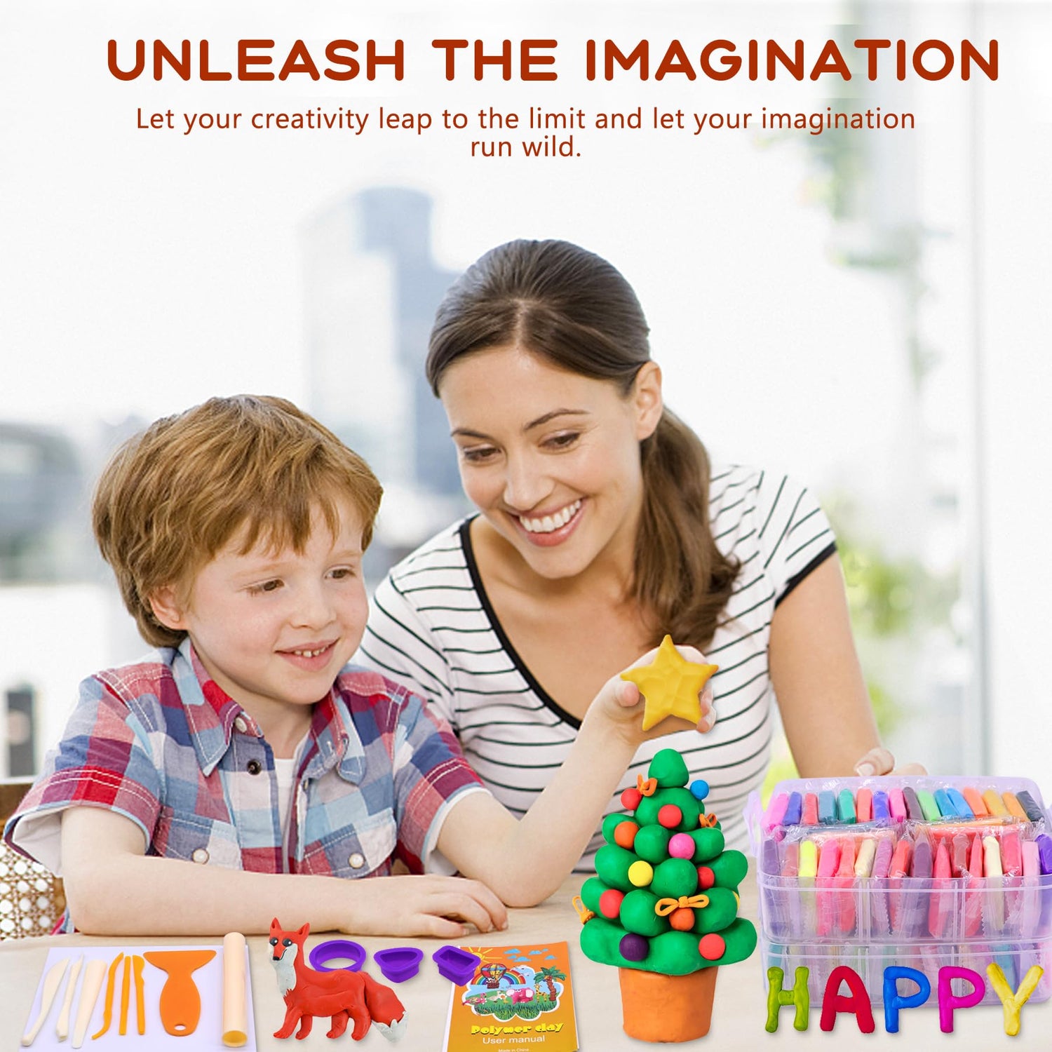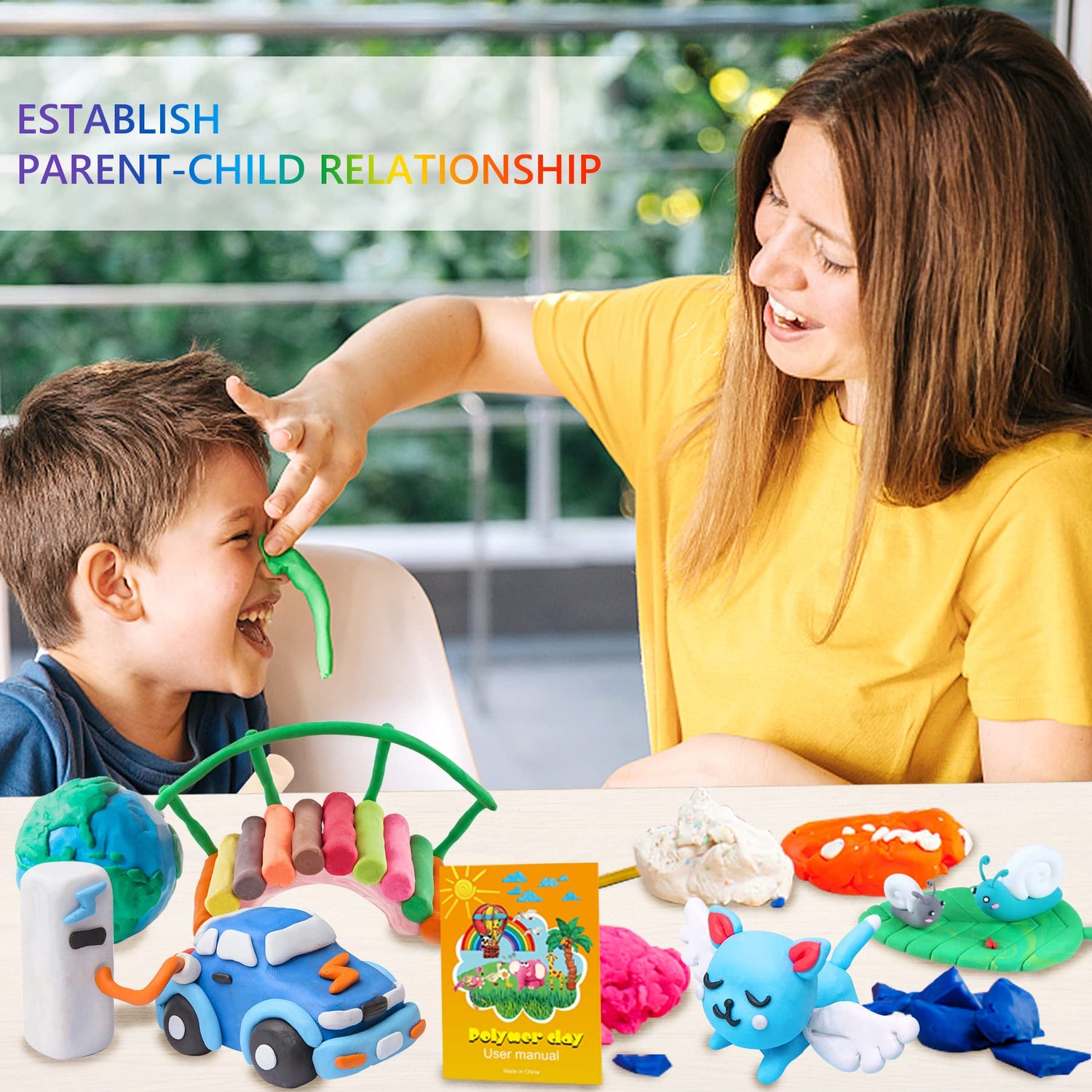 - Strong Plasticity Clay Kit: Our oven bake clay is strong plasticity and long-lasting.You can mix the polymer clay colors to create unlimited color combinations and gradients. The baking clay is soft so you can make polymer clay into any shape, texture and detail you want. Modeling clay for kids can also be used as an educational and learning tool. This clay kit can help children develop sensory and tactile skills, improve spatial imagination and creativity