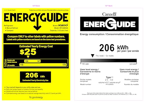 • Refrigerator Cooling Range: 32 – 50 degrees F