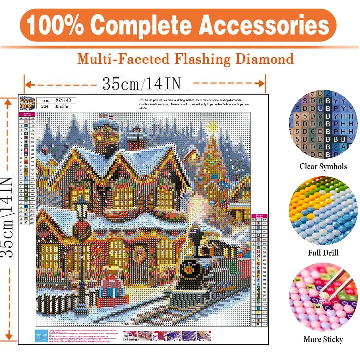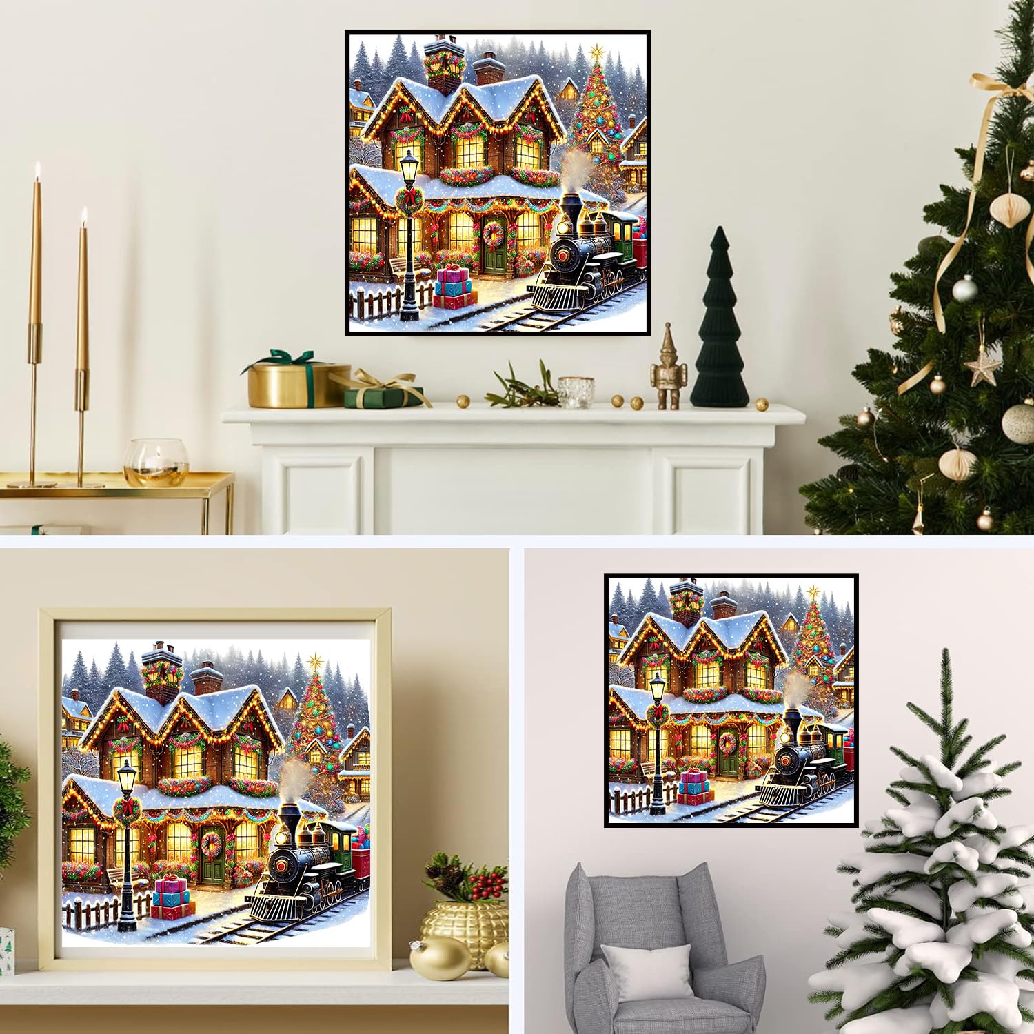 igoodom Christmas Diamond Art Kits for Adults, Christmas Train Diamond Painting Kit, Full Drill Round Winter House Diamond Art Kits, DIY Gem Art for Home Wall Decor Gift 14x14inch