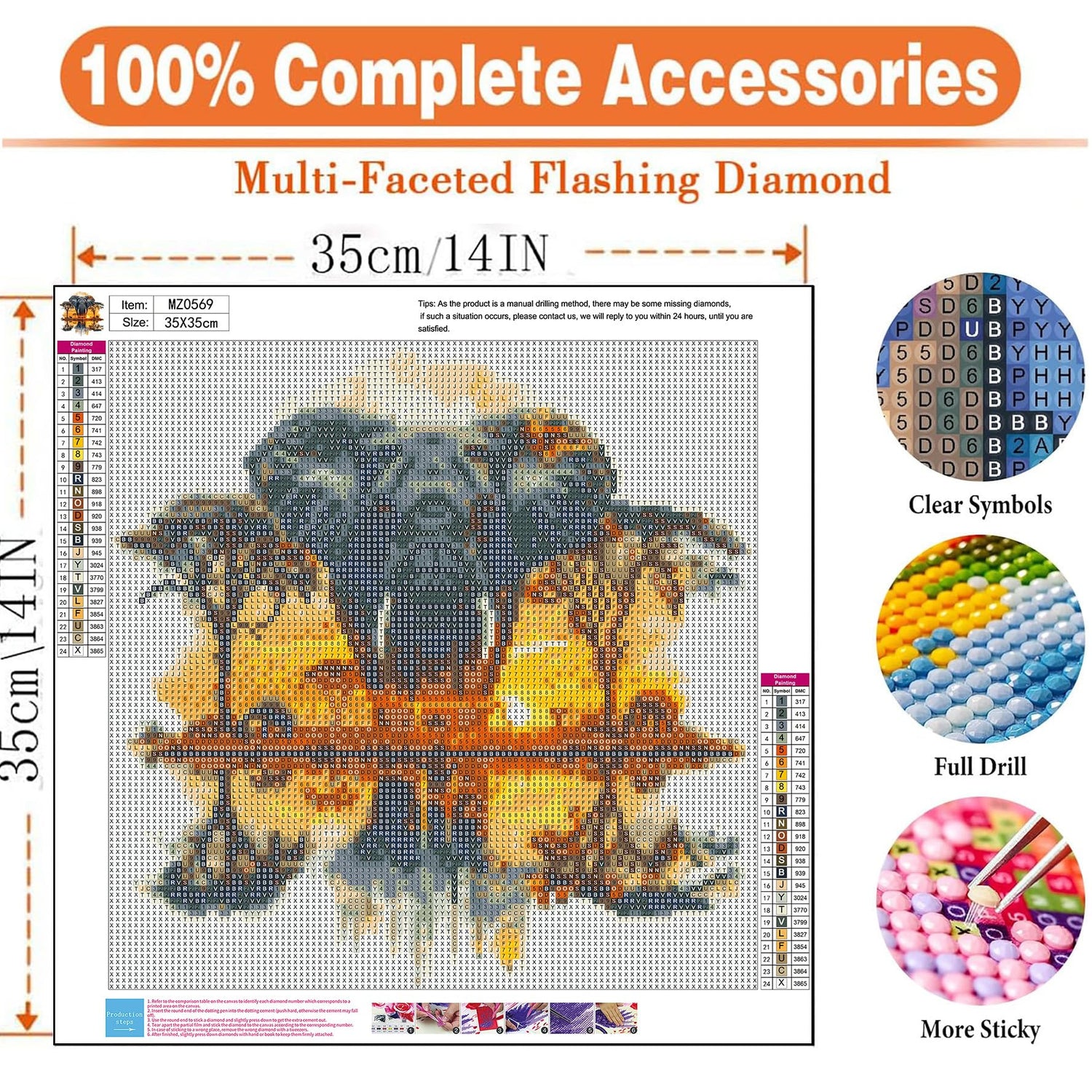 igoodom Diamond Art Kits for Adults, Elephant Diamond Painting Kit, Full Drill Round Elephant Diamond Art Kits, DIY Gem Art and Crafts for Home Wall Decor Gift 14x14inch