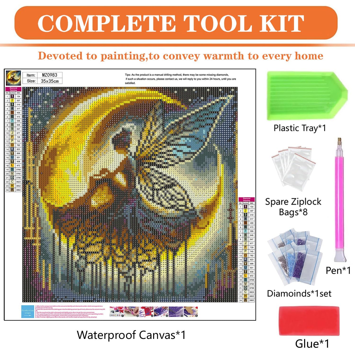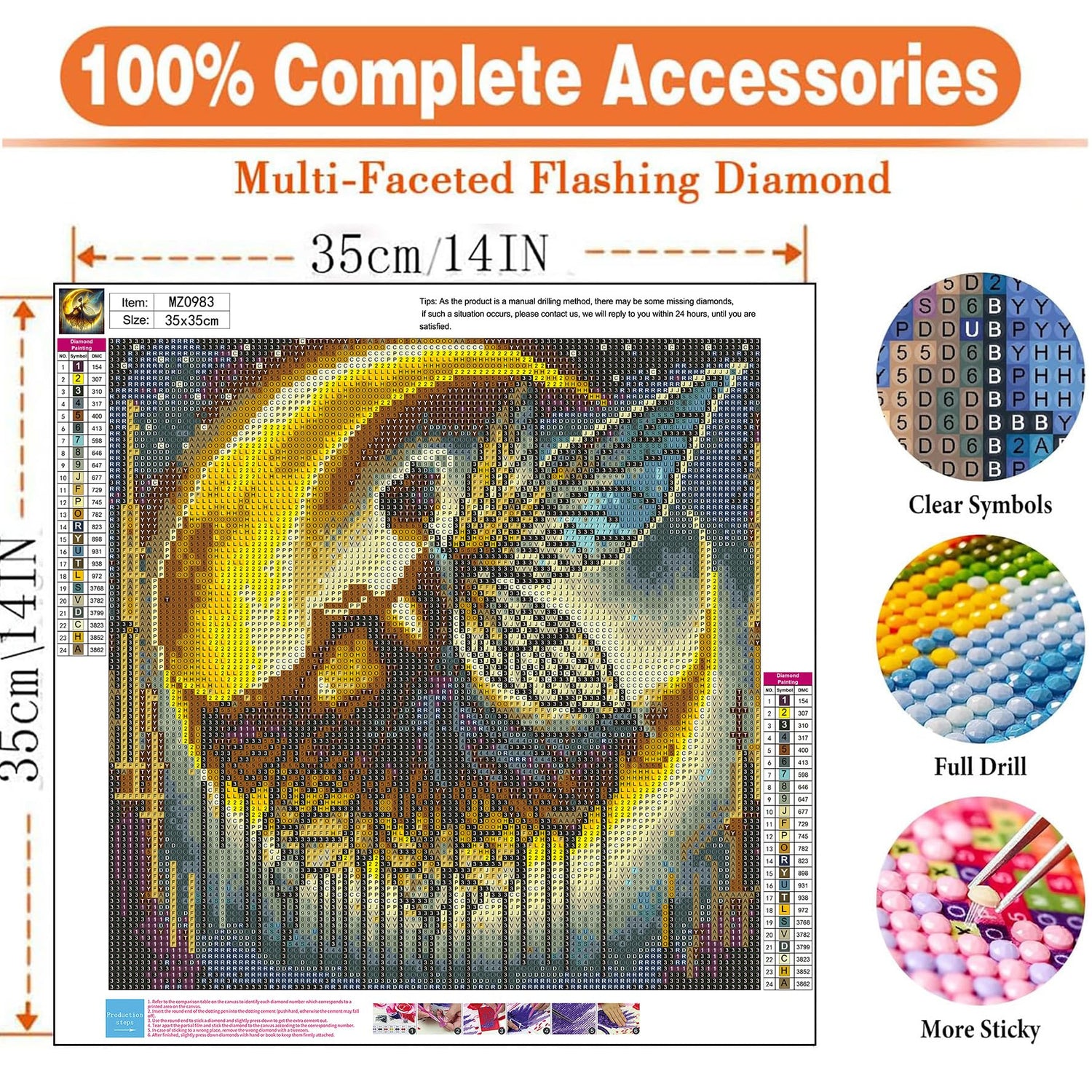 igoodom Diamond Art Kits for Adults, Fairy Diamond Painting Kit, Full Drill Round Moon Diamond Art Kits, DIY Gem Art and Crafts for Home Wall Decor Gift 14x14inch