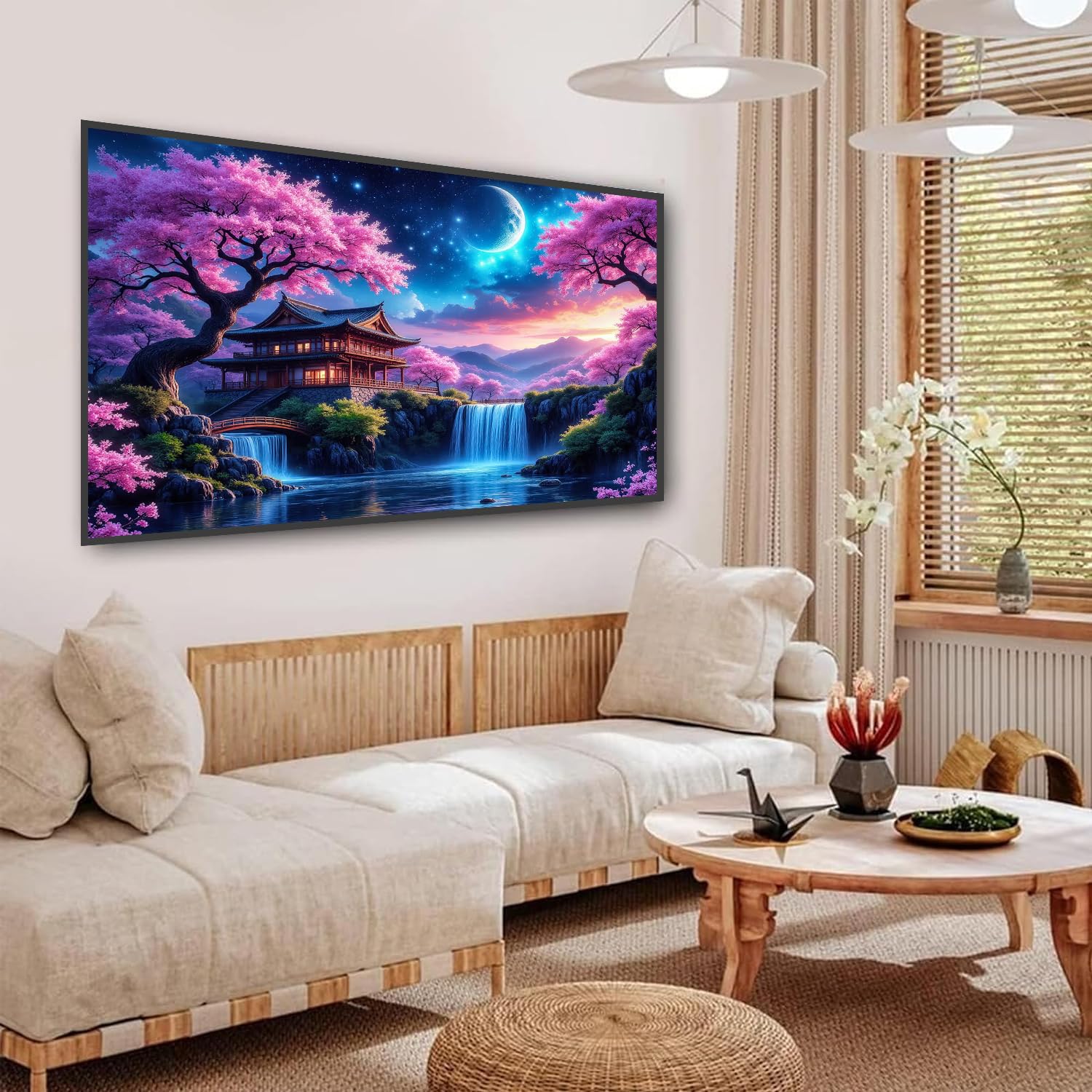 igoodom Large Diamond Painting, Large Cherry Blossoms Diamond Art Kits for Adults, Full Drill Round Big Diamond Painting, DIY Gem Art and Crafts for Home Wall Decor Gift 27.5 X 15.7inch