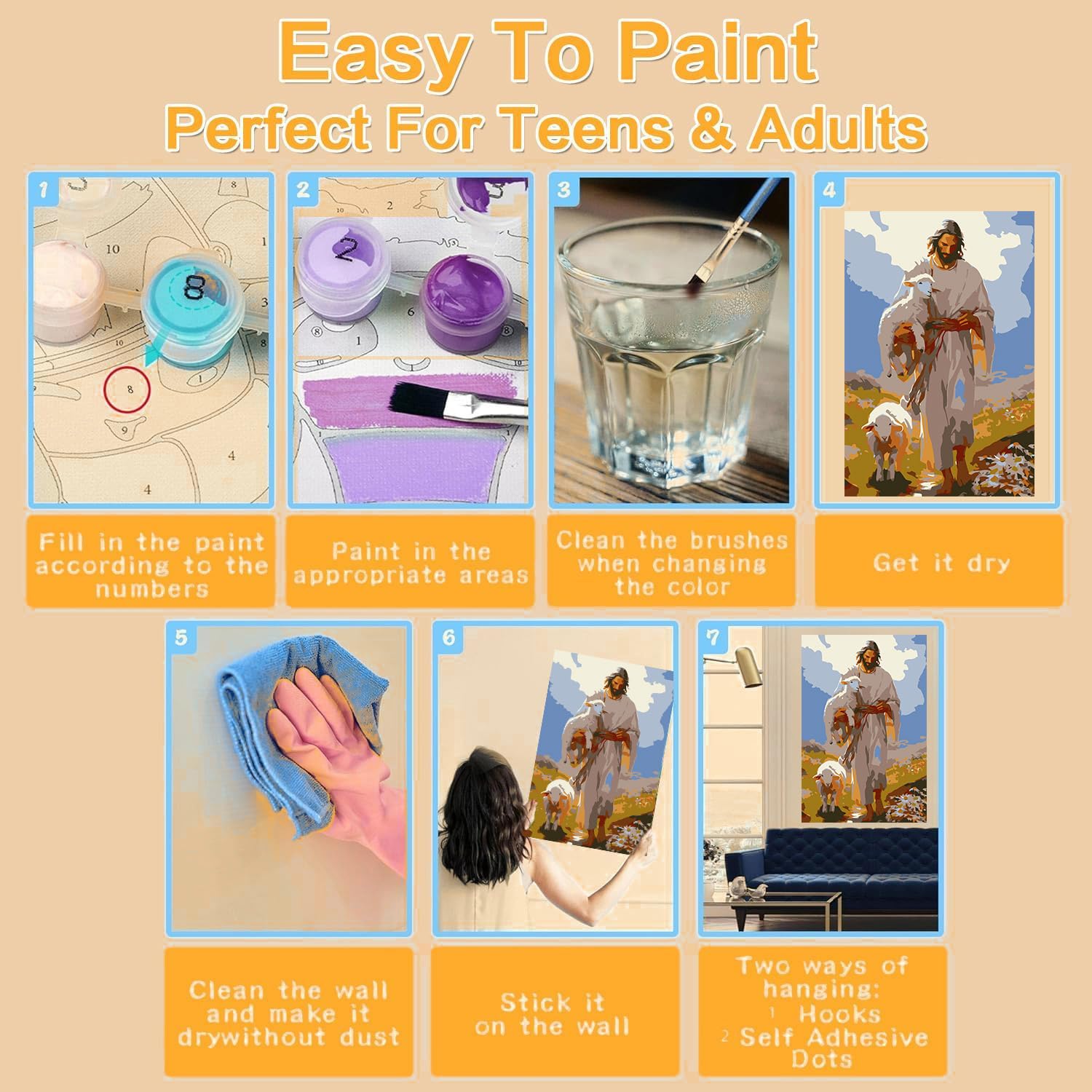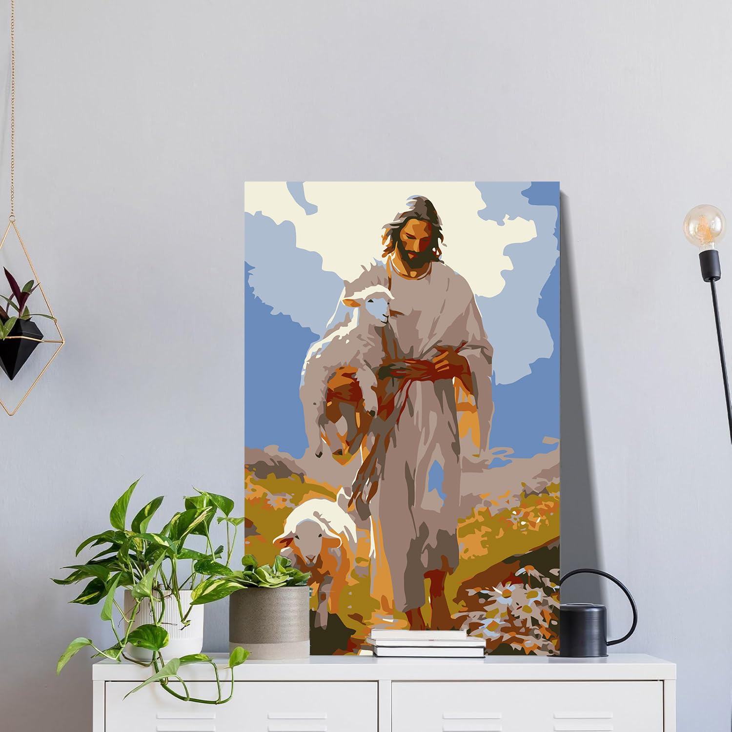 igoodom Paint by Numbers Kit for Adults with Frame and Easel, 20x30cm DIY Acrylic Painting on Canvas with Box, Jesus Paint by Number Set for Home Wall Decor