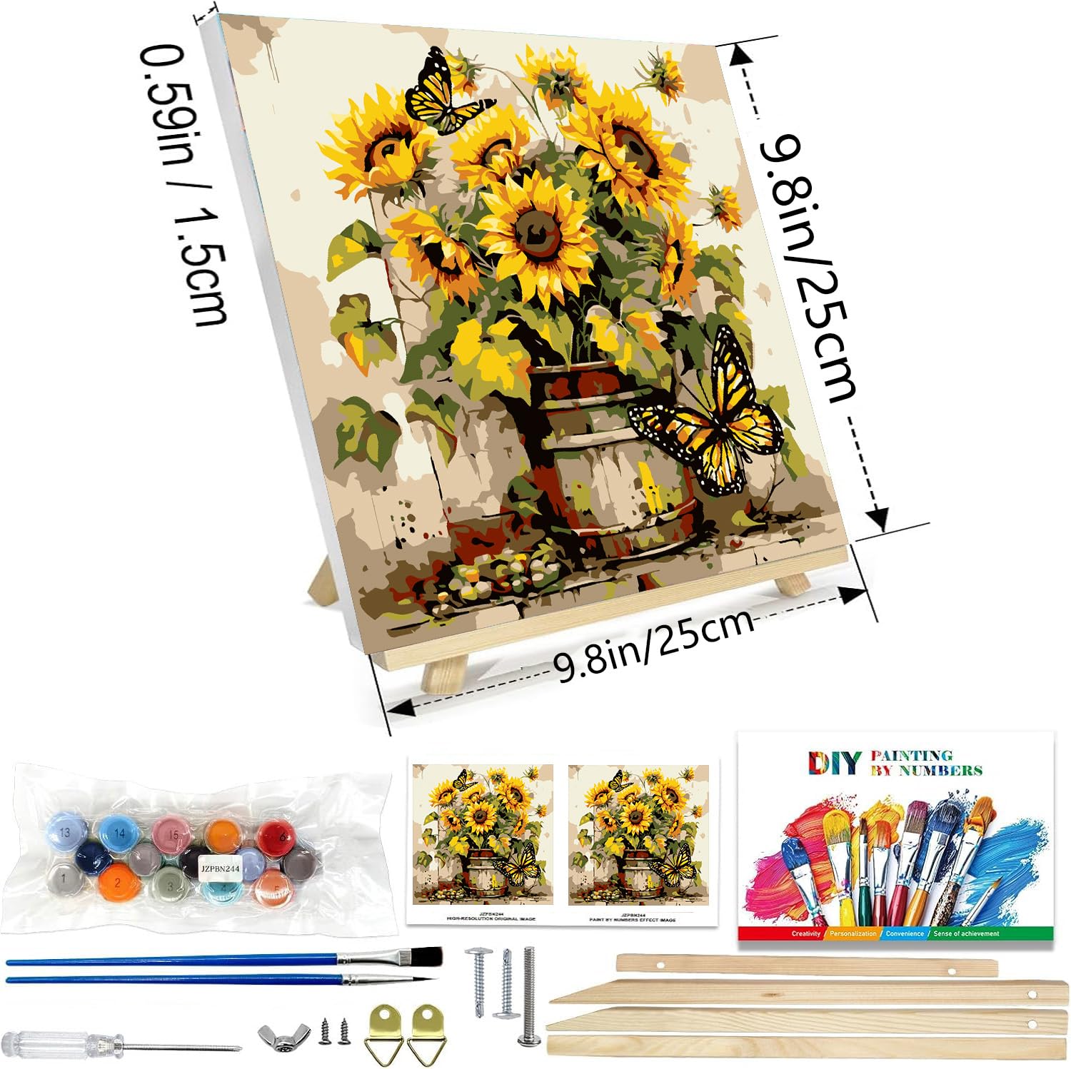 igoodom Paint by Numbers Kit for Adults with Frame and Easel, 25x25cm DIY Acrylic Painting on Canvas with Box, Sunflower Paint by Number Set for Home Wall Decor