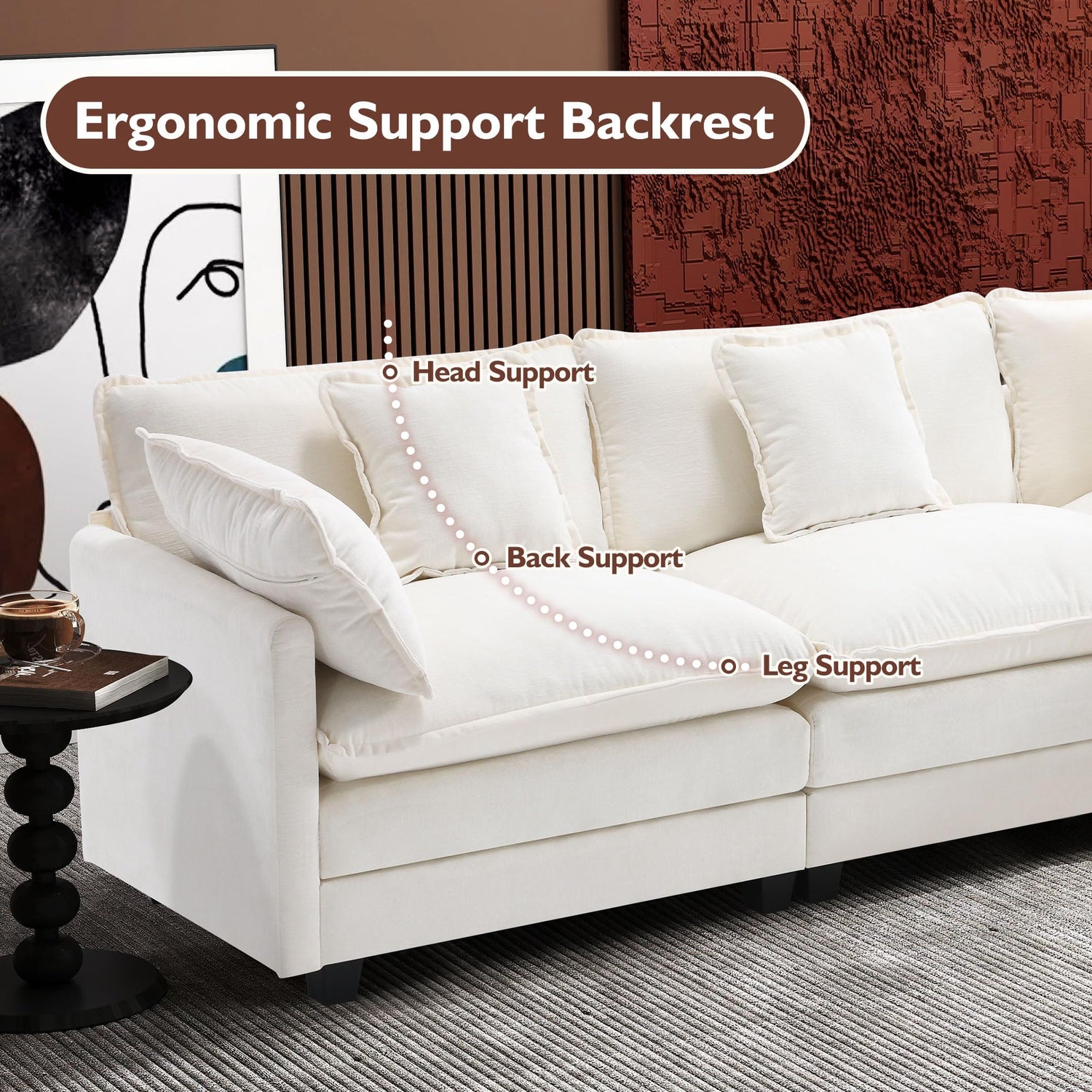 - Luxurious and Comfortable: The cloud sofa features a double layer of high resilience foam seat cushions, with ergonomic lumbar support design backrest, 3 back pillowsand 2 arm pillows for a super cozy feeling of being surrounded by clouds.
