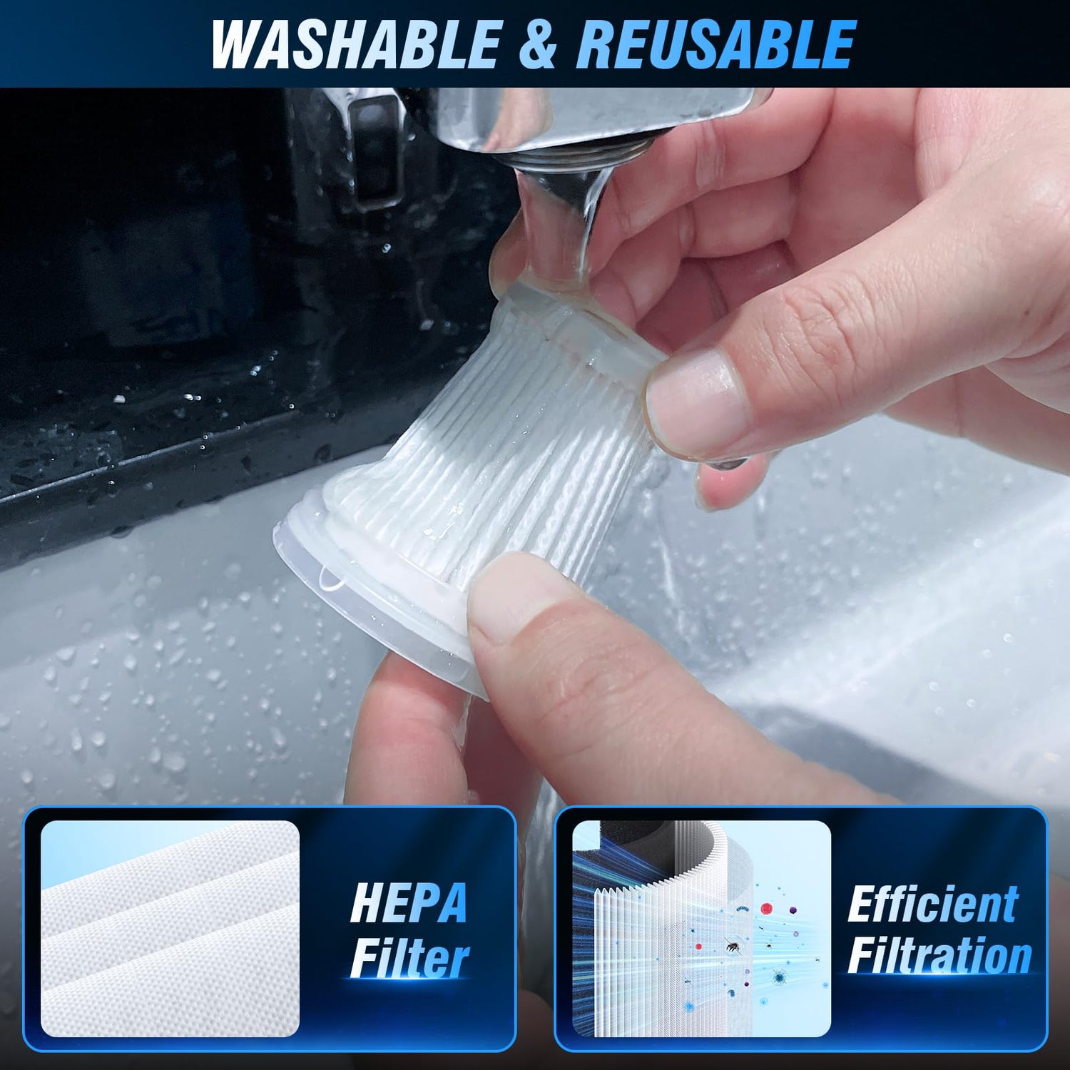 - 【Washable HEPA Filter】The handheld vacuum cleaner has a filter that can be washed. It is durable and can maintain good filtration performance after washing, ensuring a long service life and stable cleaning effect