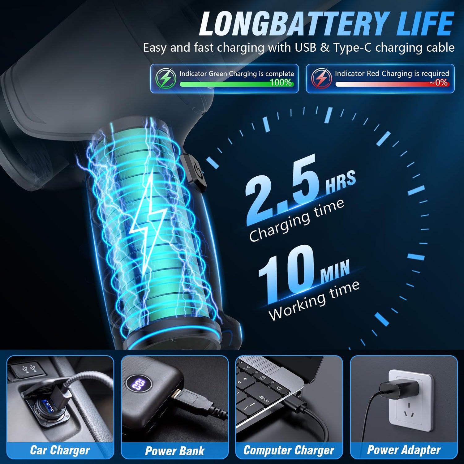 - 【Practical and Complete Accessories】The set includes various nozzles to suit different usage needs. It is a wet and dry vacuum, capable of handling both dry dirt and liquid spills. With a 120W power output and a 2000mAh battery, it can be charged via USB, allowing for quick recharging anytime and anywhere. The rich accessories enhance the convenience of your life
