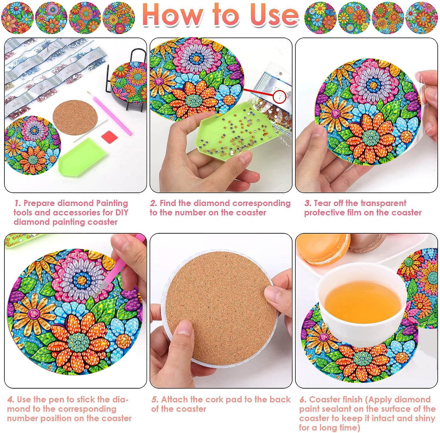 - 【Package Contents】: You will receive 8 Flowers theme Diamond art coasters, 8 cork coasters, 1 coaster holder, enough colorful diamonds, 1 clay, 1 pen and 1 diamond tray to satisfy Your creative needs.