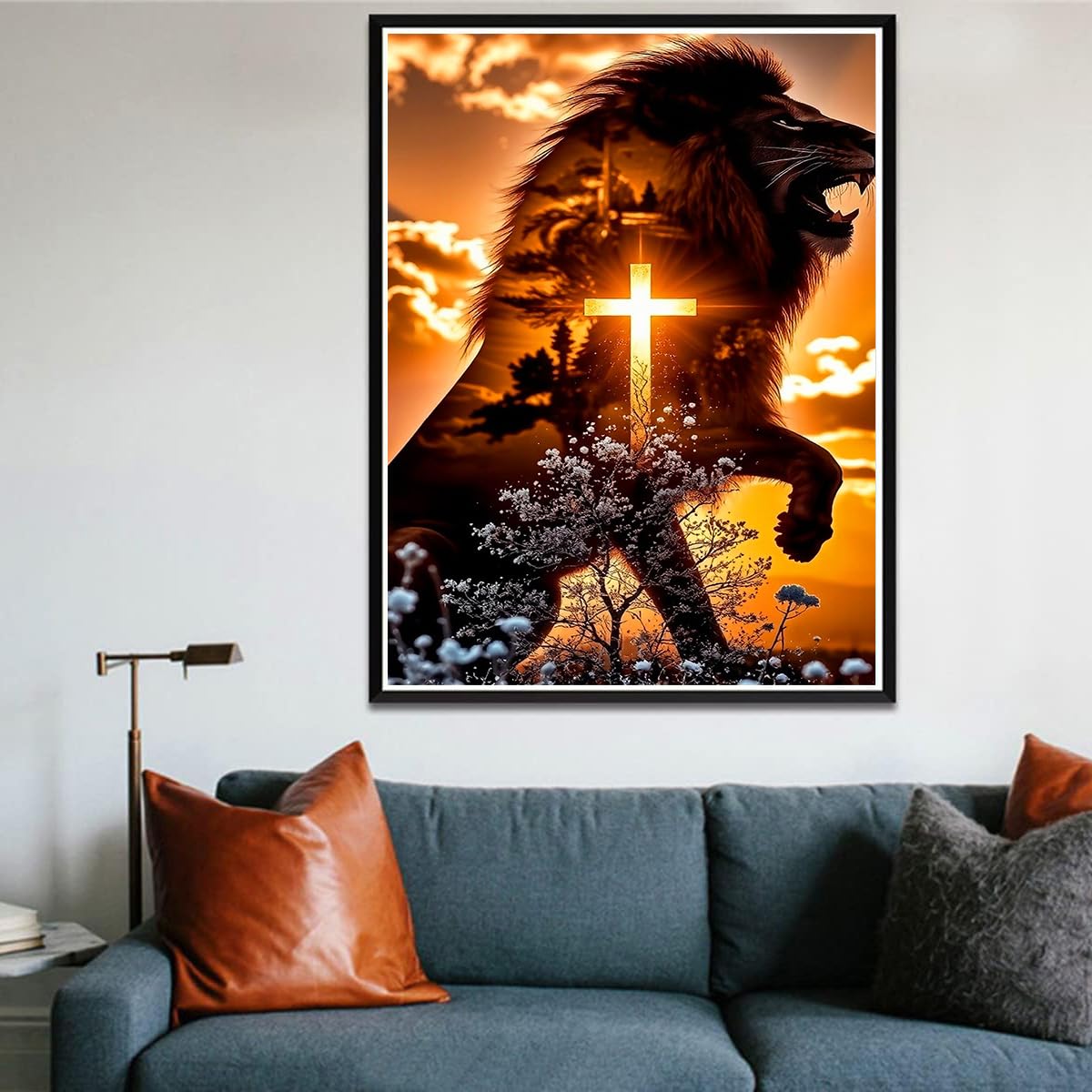 - 【Diamond Art Kits - Full Of Fun】Lion Cross Diamond Painting can Enrich Your Leisure Time and Help Relieve Stress. You will Get a Piece of Art When You are Finished, Just Hang It on the Wall, It will Make Your Room and Add More Fun to Your Life.
