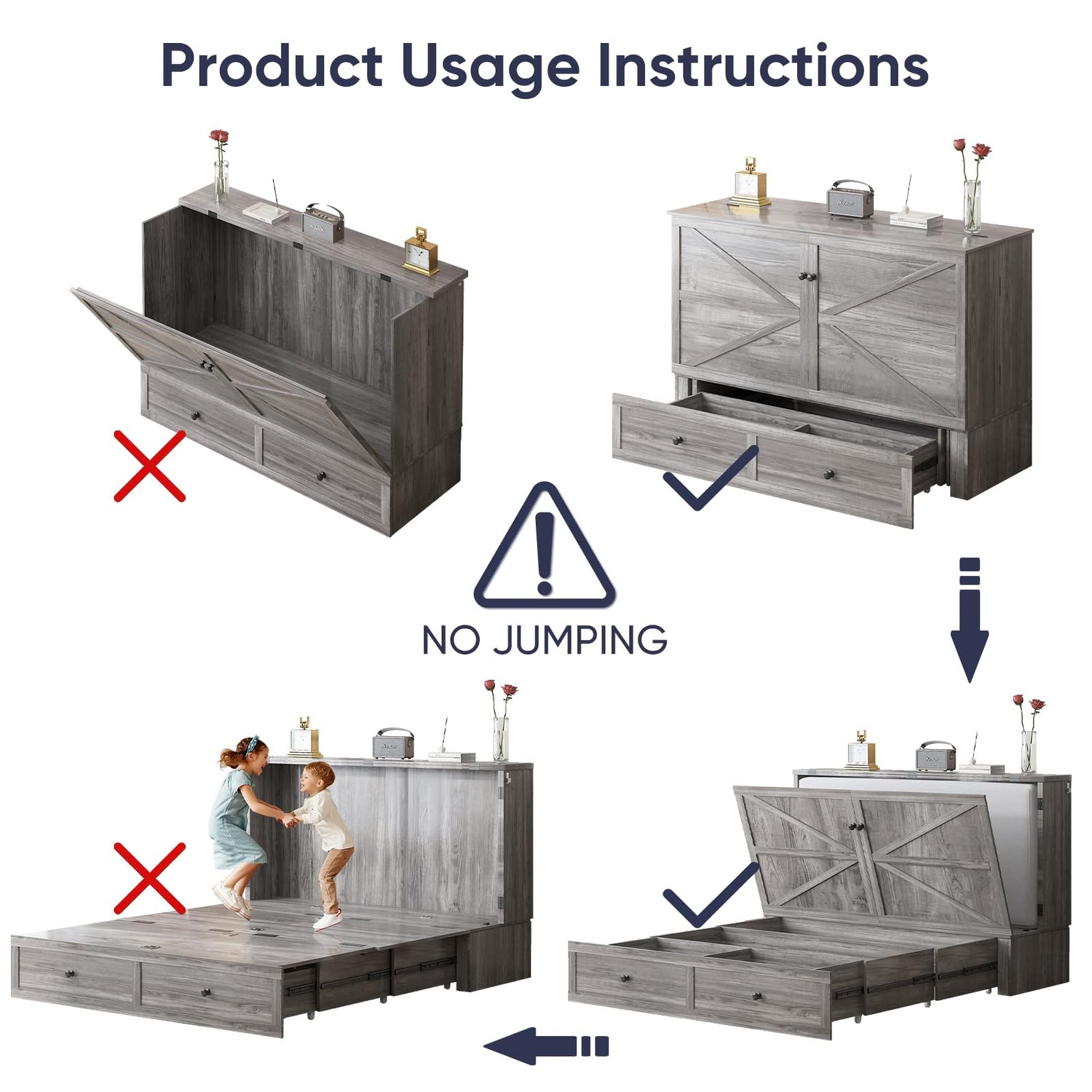 Details: ijuicy Full Murphy Bed with Storage & Multifunctional Charging Station, Farmhouse Murphy Cabinet Bed with Foldable Panel, Space-Saving Beds for Guest Bedroom,Living Room(Mottled Grey, With Mattress)