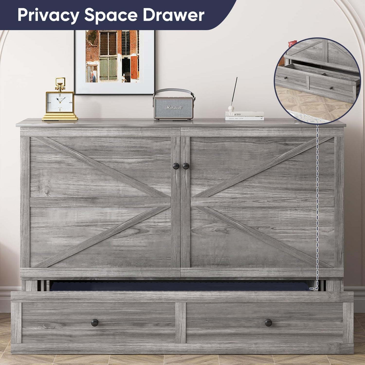 ijuicy Full Murphy Bed with Storage & Multifunctional Charging Station, Farmhouse Murphy Cabinet Bed with Foldable Panel, Space-Saving Beds for Guest Bedroom,Living Room(Mottled Grey, with Mattress)