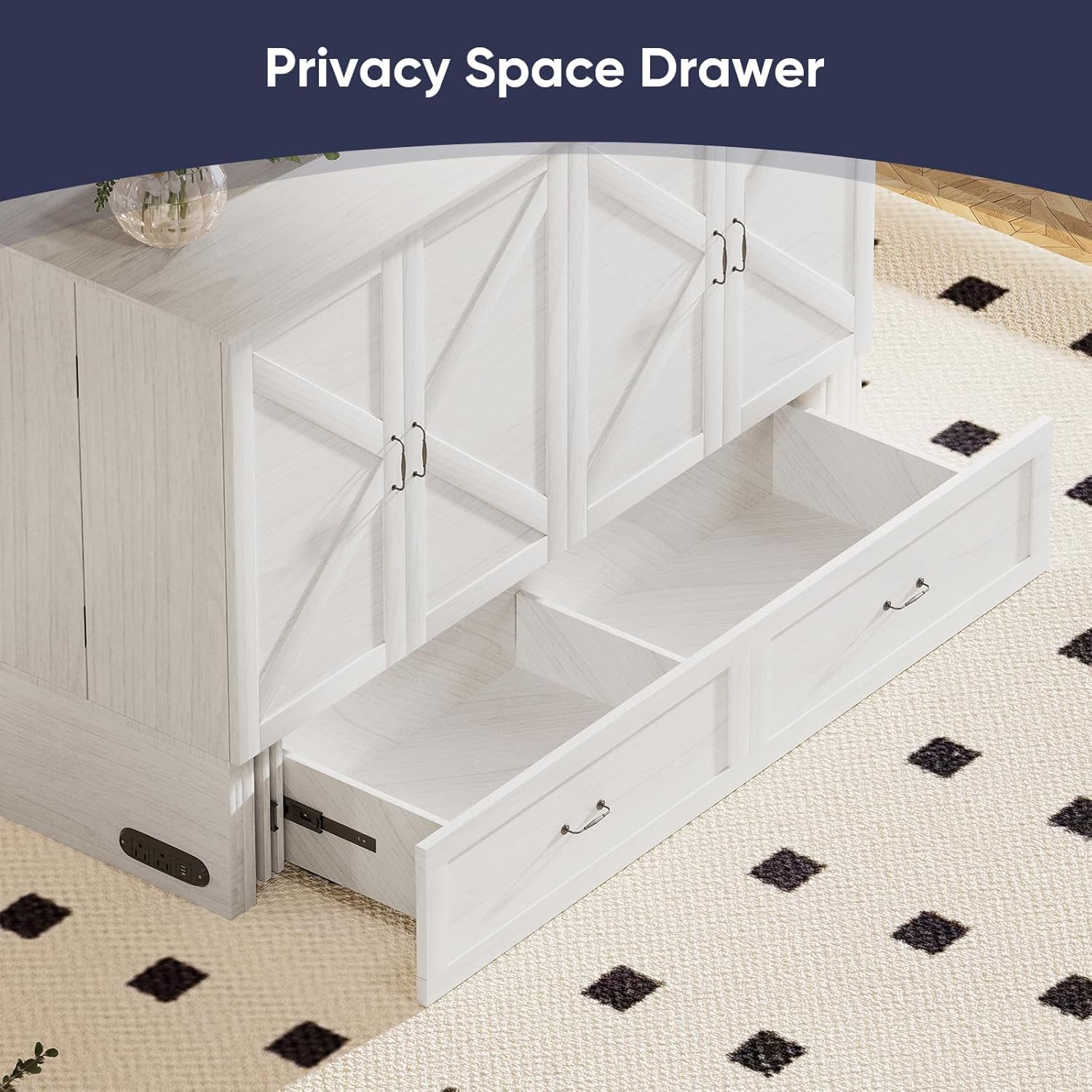 - 【Built-in Charging Station Access】The queen size cabinet bed features integrated power module: 2 standard AC outlets and 2 USB charging ports, which makes charging easy and convenient