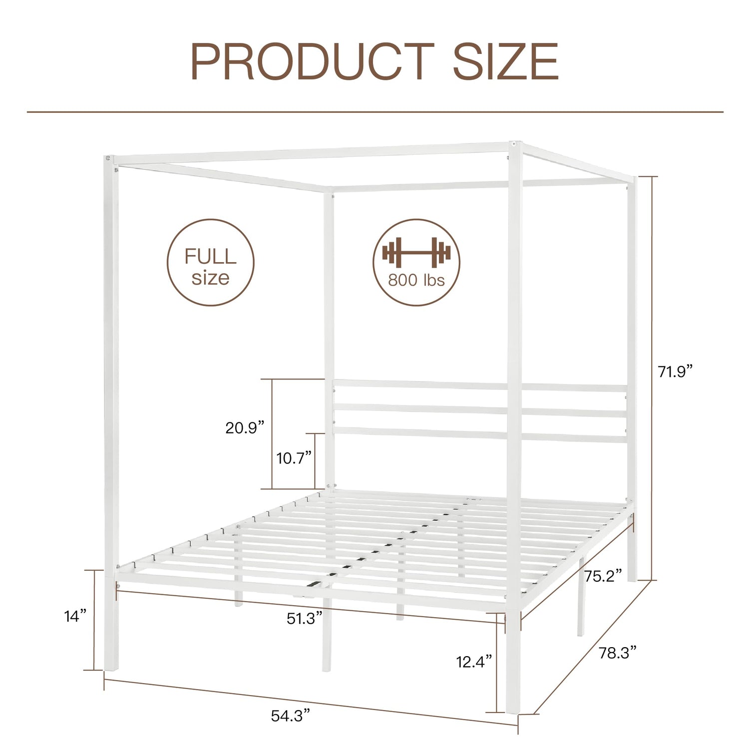 ikalido Full Size Metal Canopy Bed Frame, Modern Four-Poster Platform Bed Frame, Mattress Foundation with Metal Slats Support/Under-Bed Storage Space/No Box Spring Needed/White