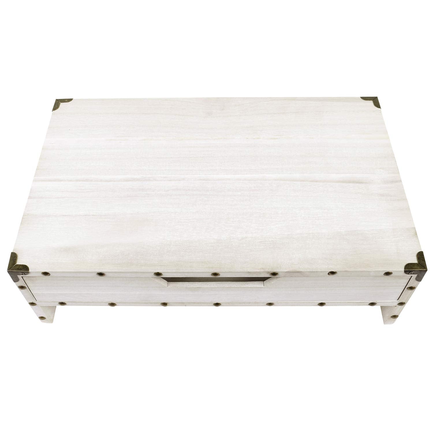 - WOOD DESK STAND STORAGE ORGANIZER - This monitor stand decorated with metal corner protector features a drawer devided into 3 compartments that can store essential supplies, offering a practical solution for keeping your space clutter-free. It can be used as a computer monitor stand or a desktop organizer.