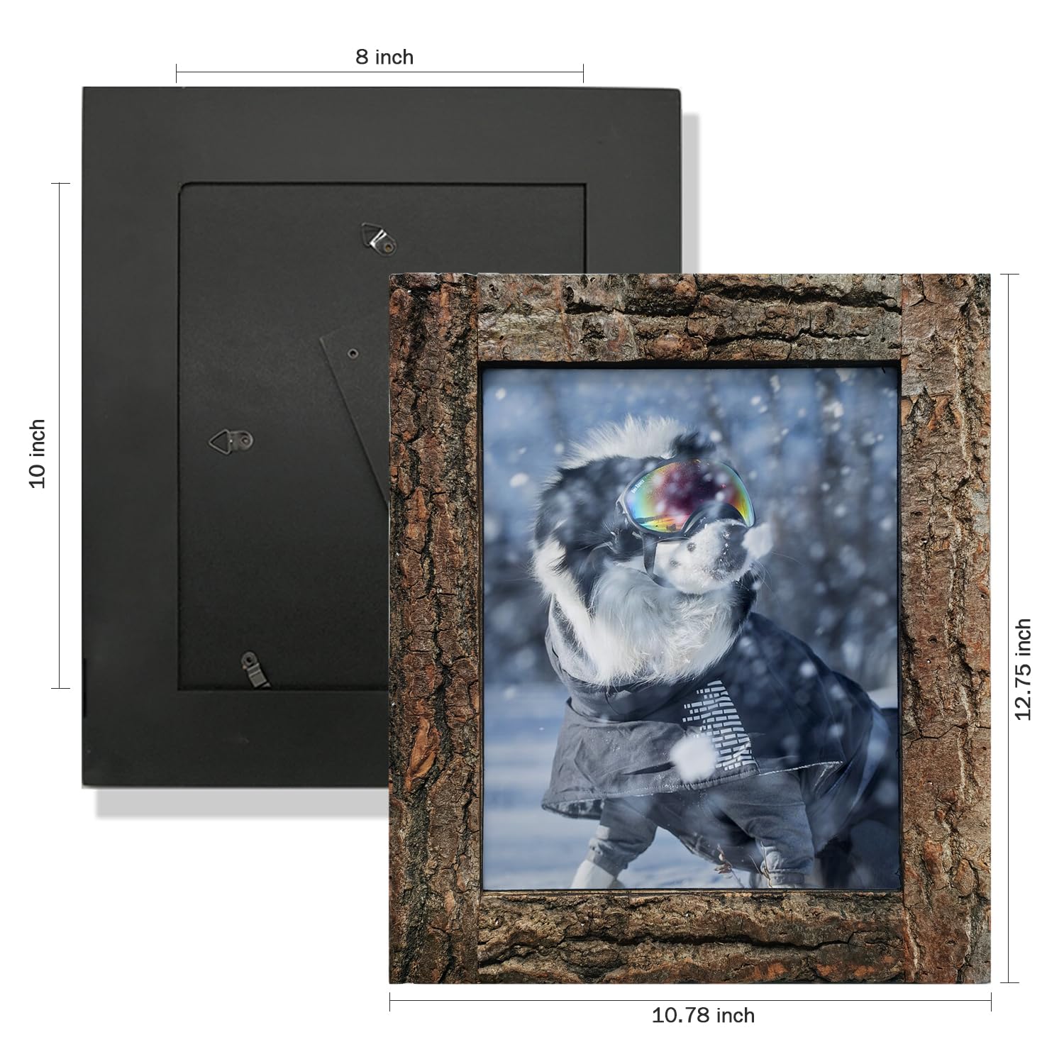 IKEREE 8x10 Rustic Picture Frames with Real Bark, Made of Natural Wood and Real Glass, Display Pictures for Tabletop or Wall Mounting.