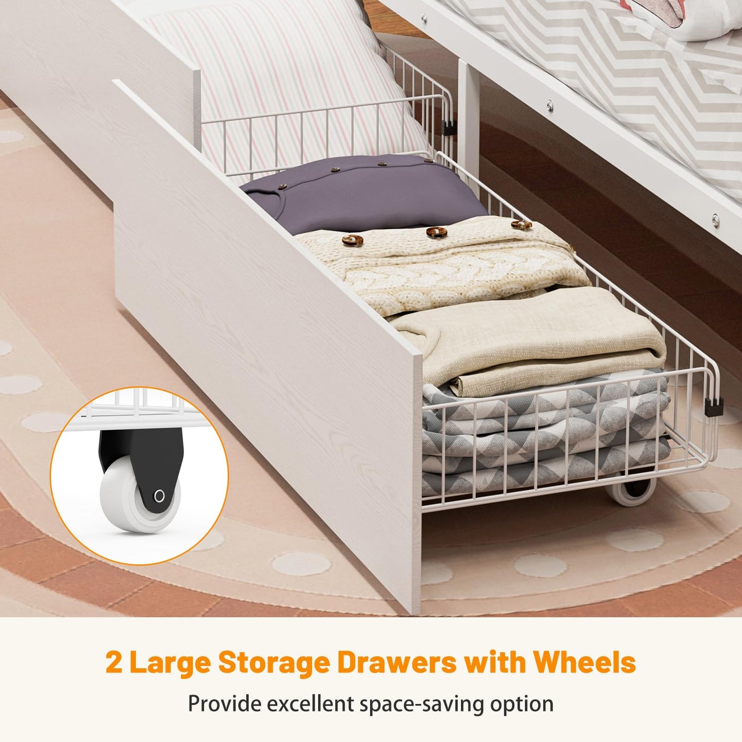 - 2 Large Storage Drawers : Enjoy ample storage space with 2 large sliding drawers, seamlessly integrated into the full over full bunk bed. These spacious compartments offer ample room for clothing, books, and more, adding a lot of extra flexible storage space