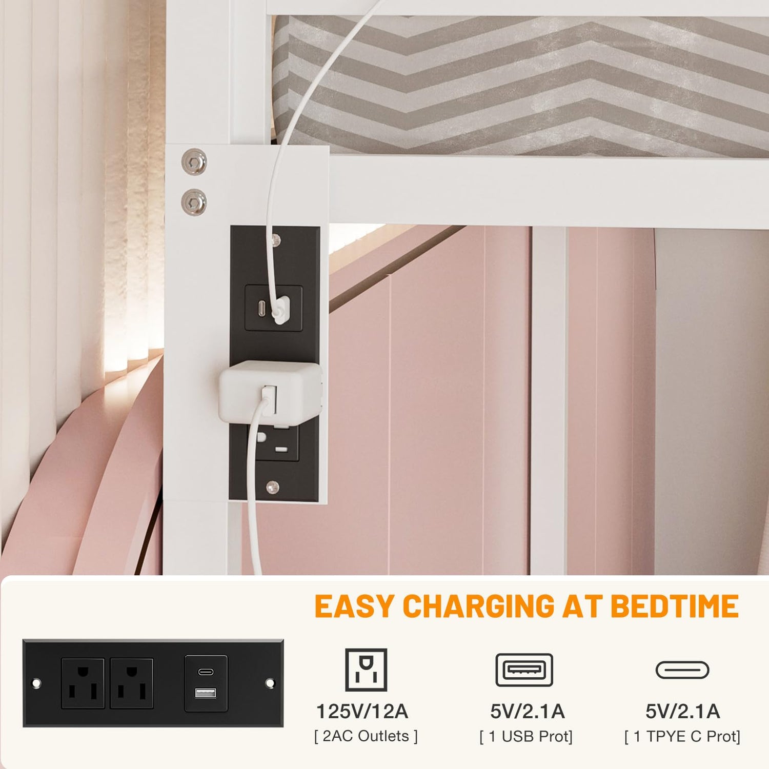 - Practical Charging Station : Featured a built-in charging station with 2 Outlets, 2 USB Ports (1 Type C), making it very convenient for you to charge your electronic devices within your reach or use a book light while you're on the upper bed. No need to worry low battery